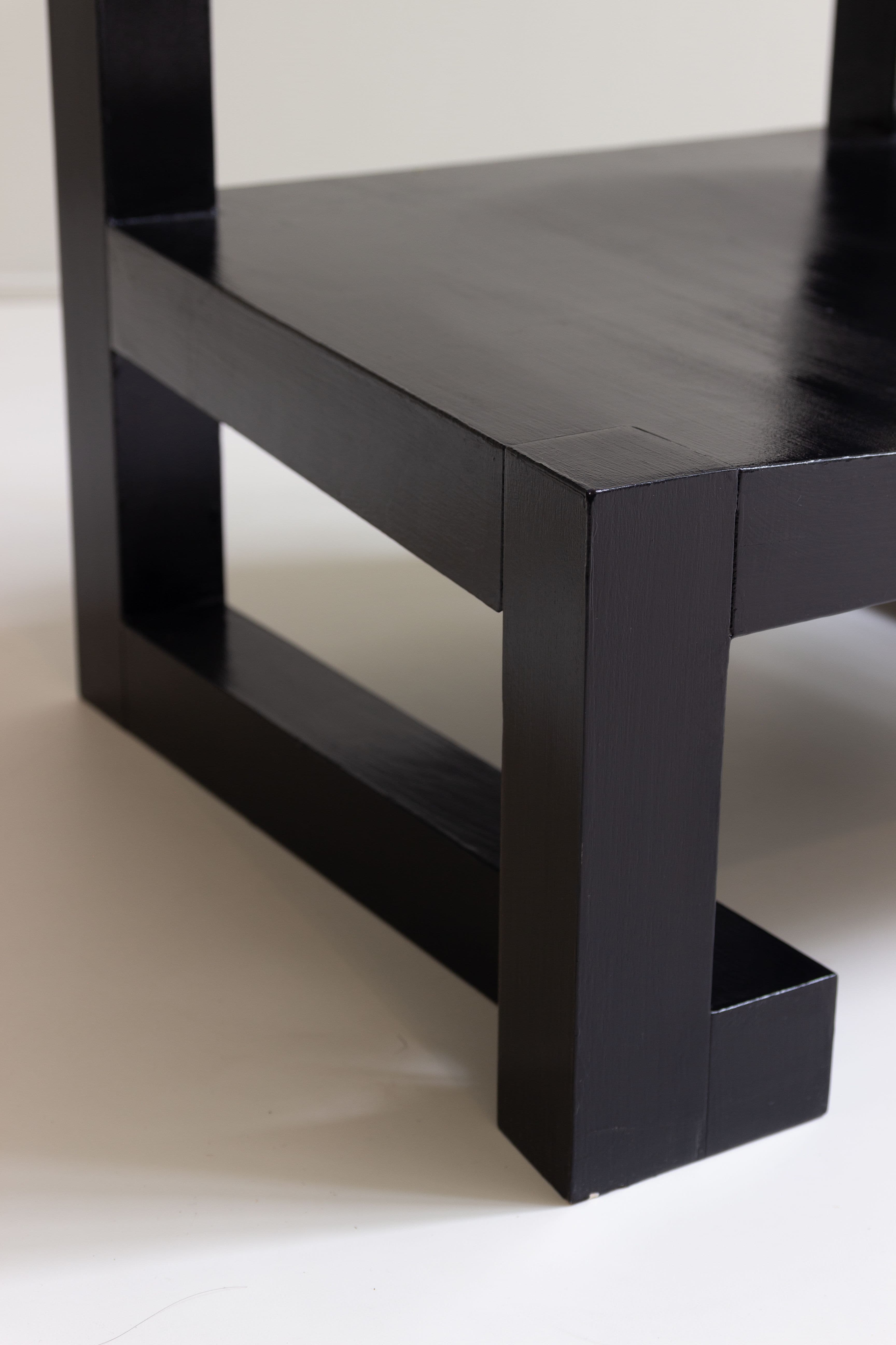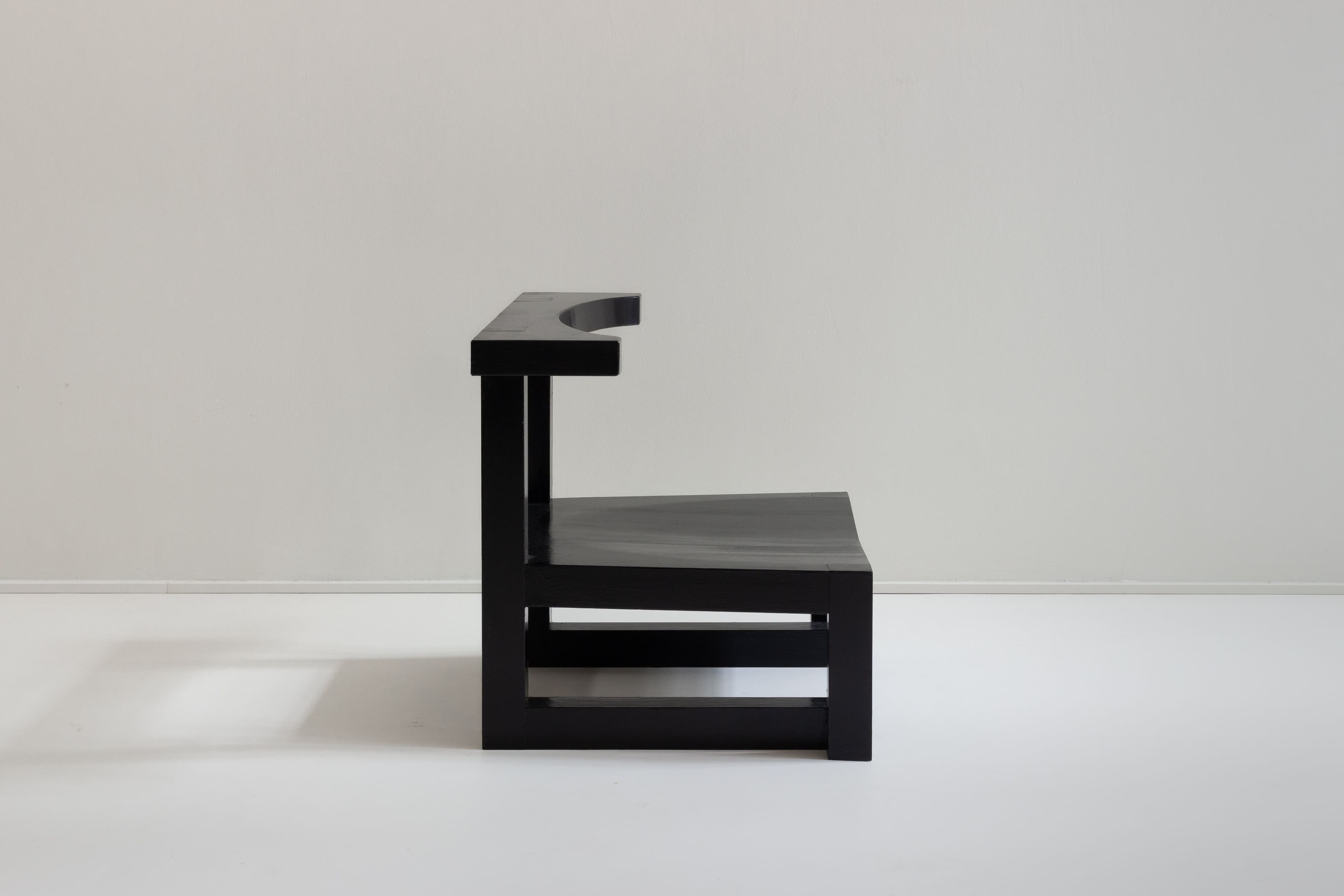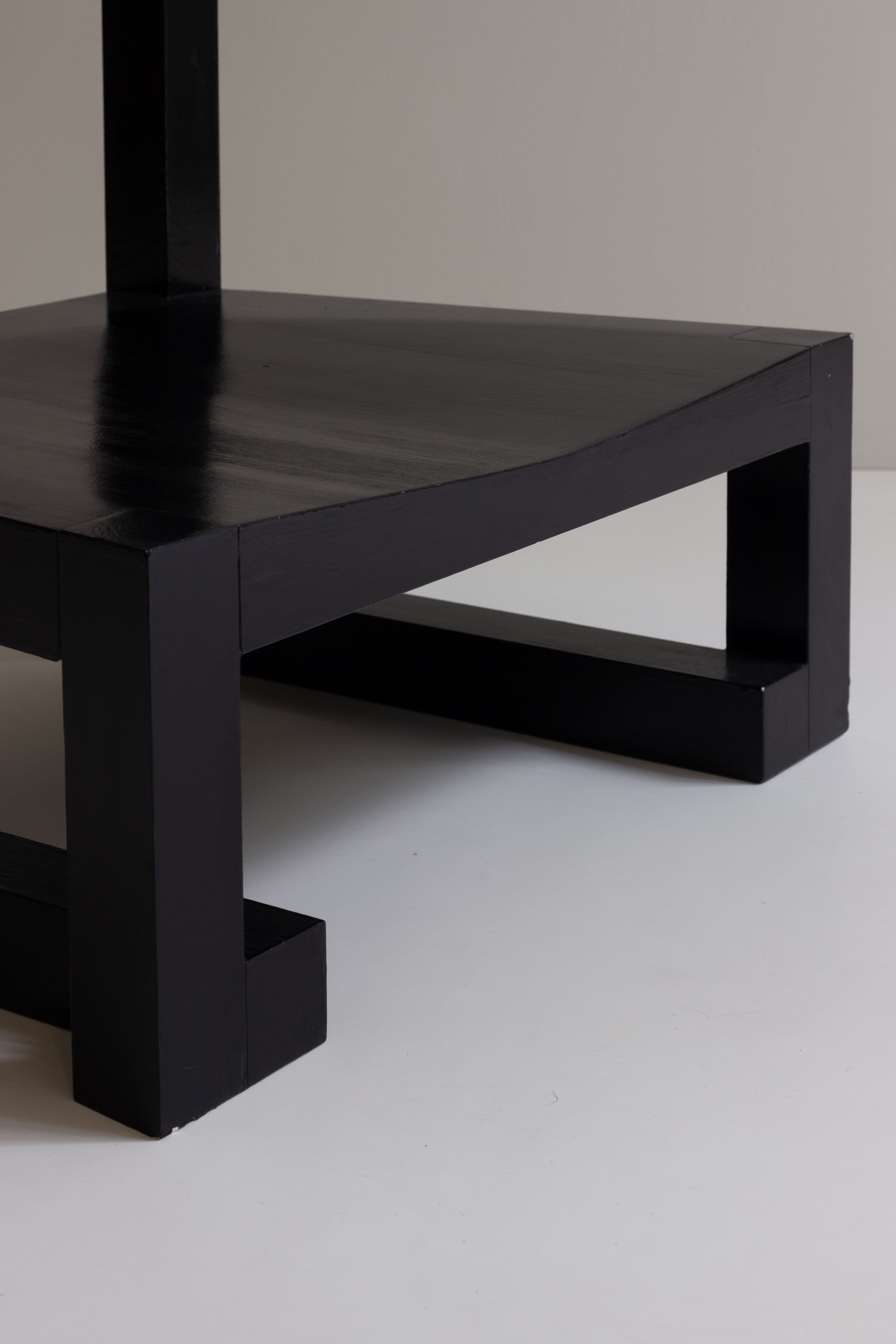 Available in ebonized solid oak, oiled solid oak and lacquered wood. Each piece is numbered as part of a limited collection