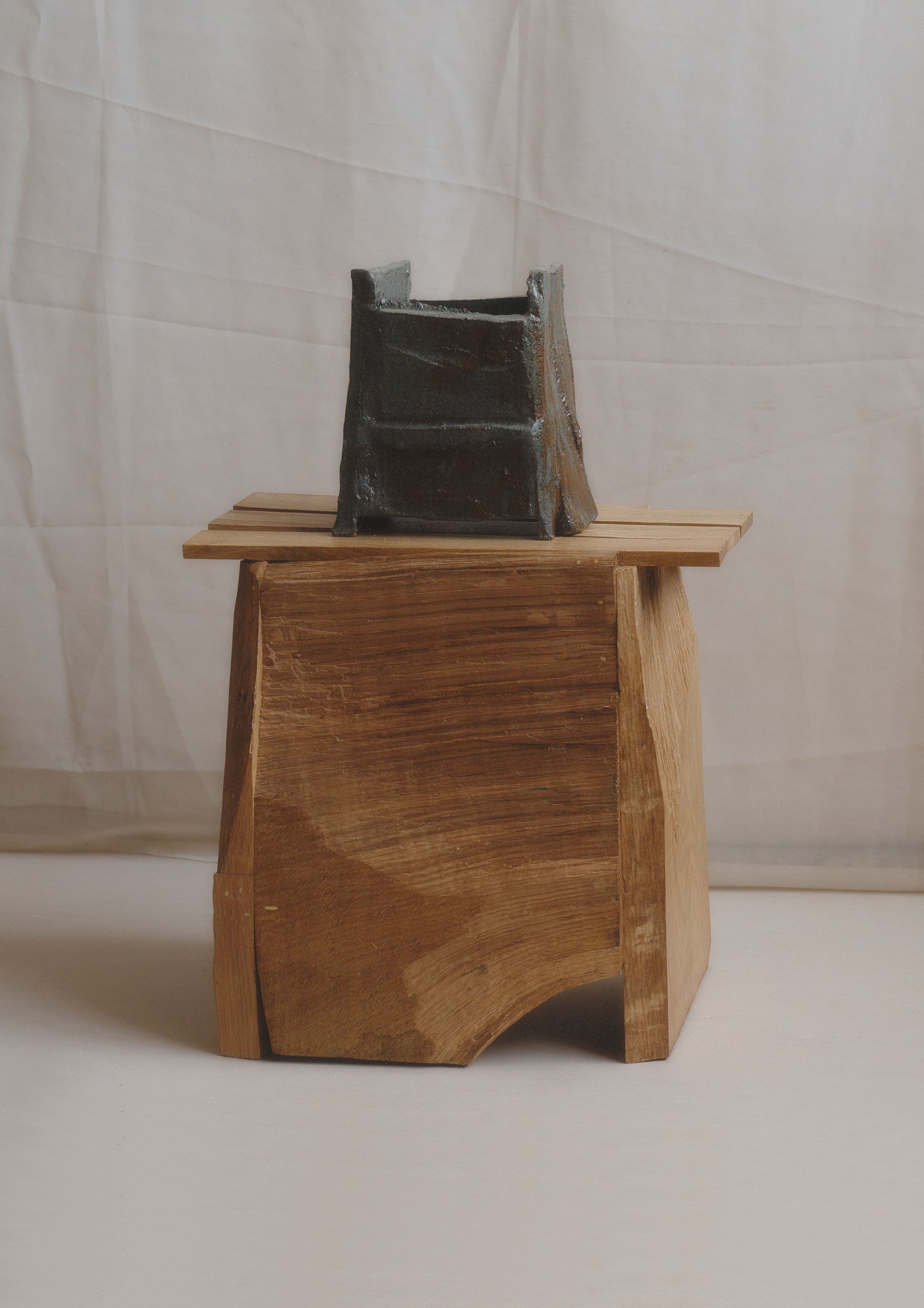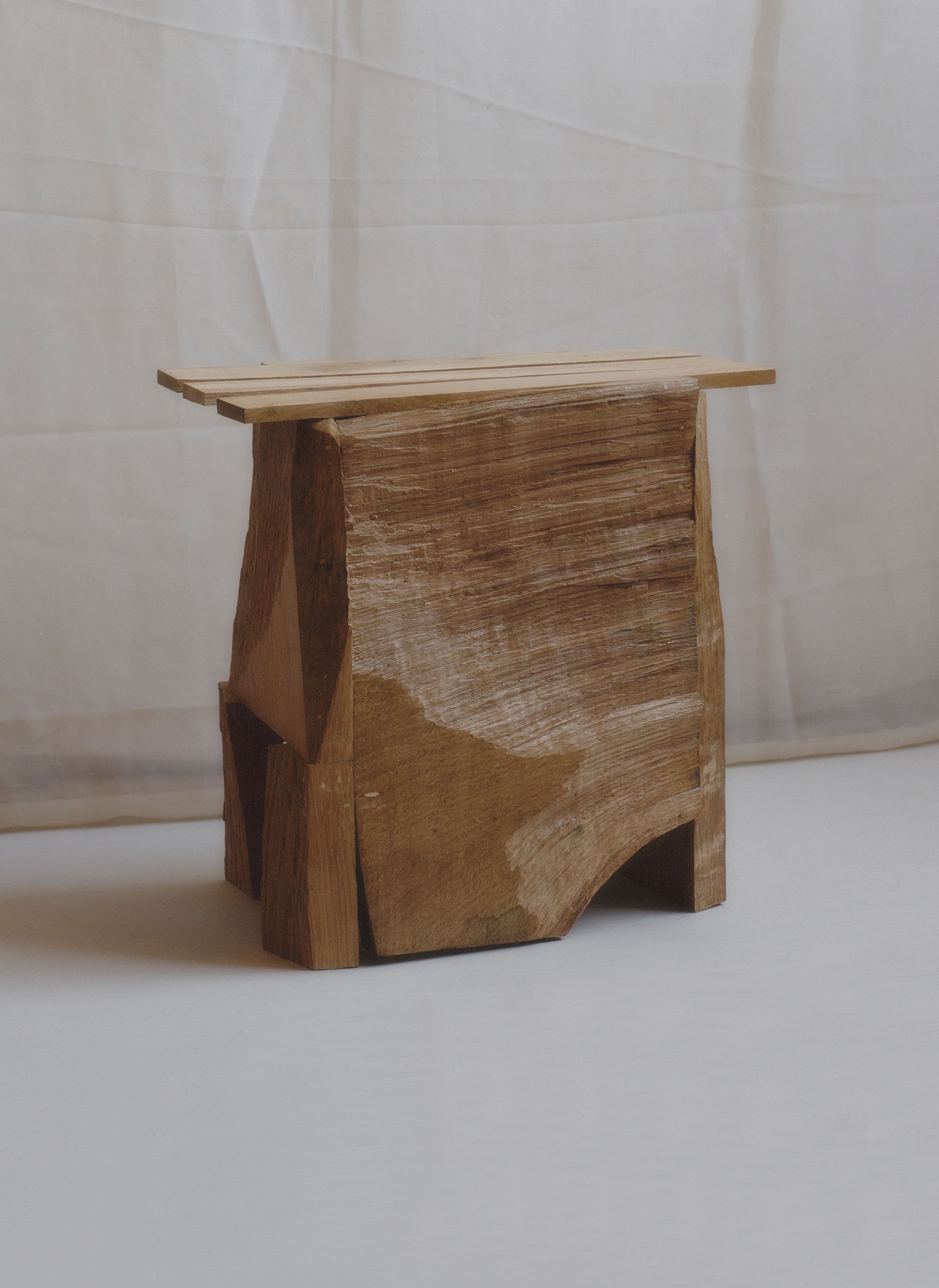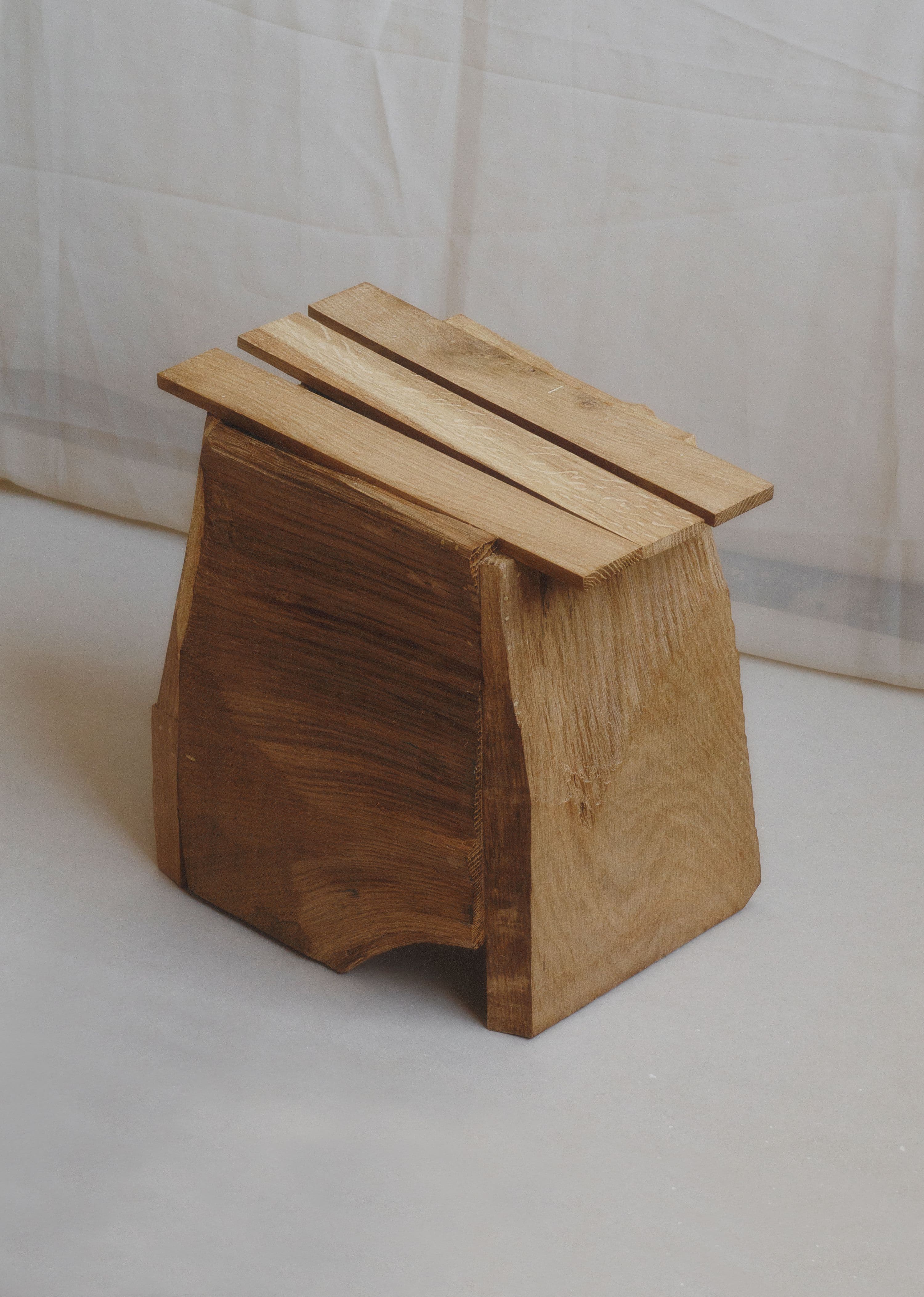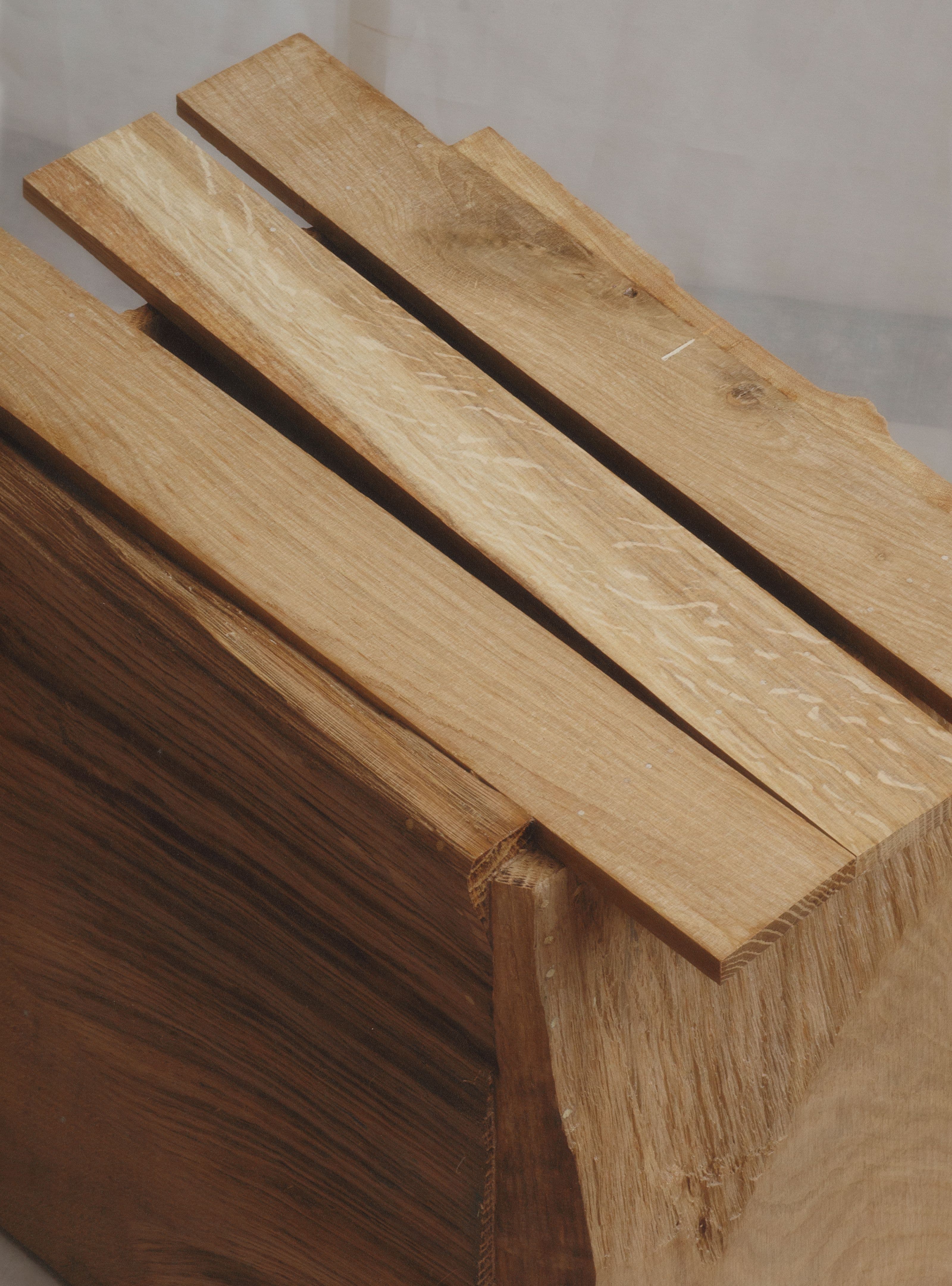 Oak wood, limba, bamboo and birch dowels, beeswax