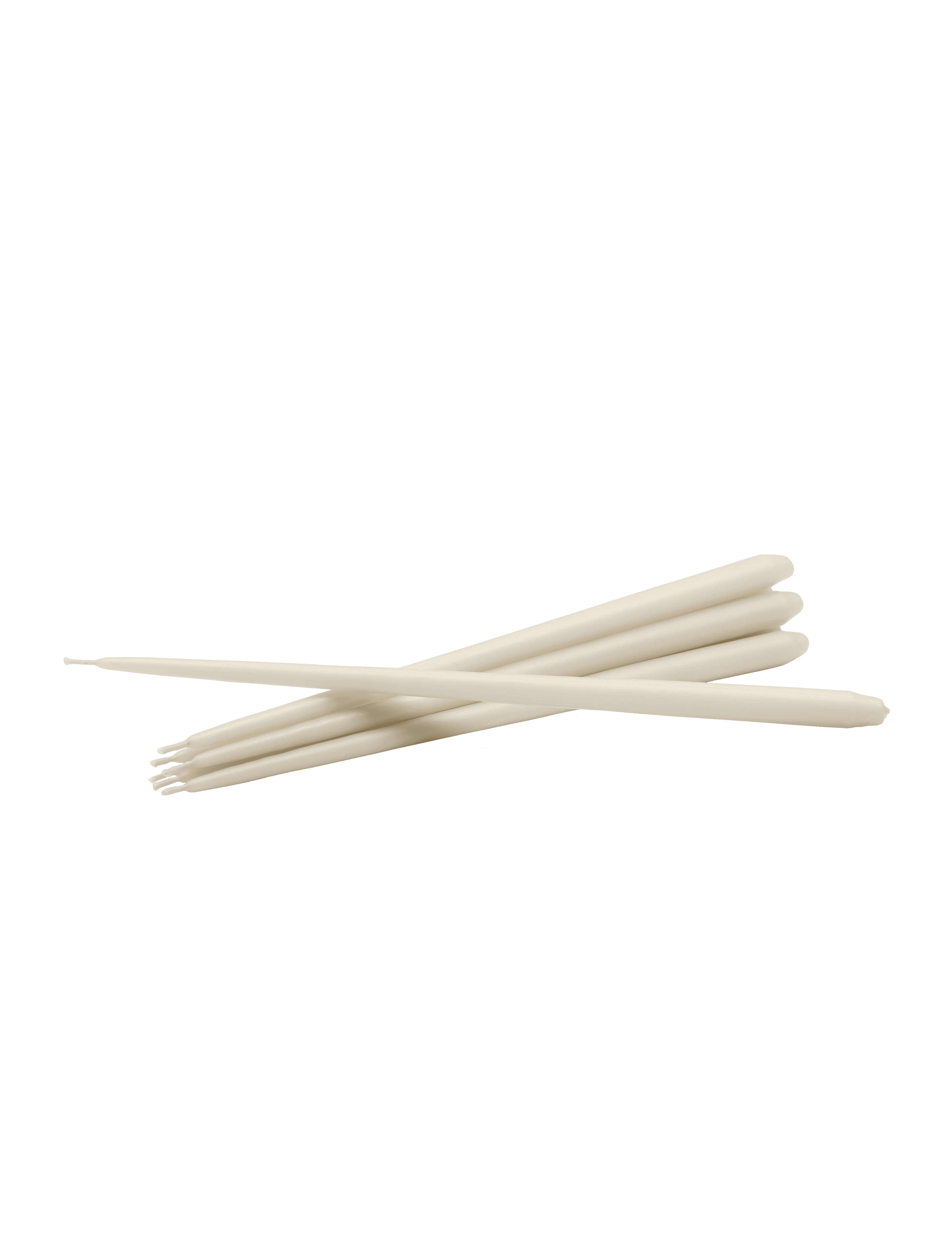 The exclusive, hand-dyed STOFF Nagel taper candles by Danish ester & erik have a long and tapered shape with a cone-shaped bottom to make them fit perfectly in the STOFF Nagel candle holders. The candles do not drip, are self-extinguishing and burn out slowly and elegantly so that no residues are left in your candle holders.