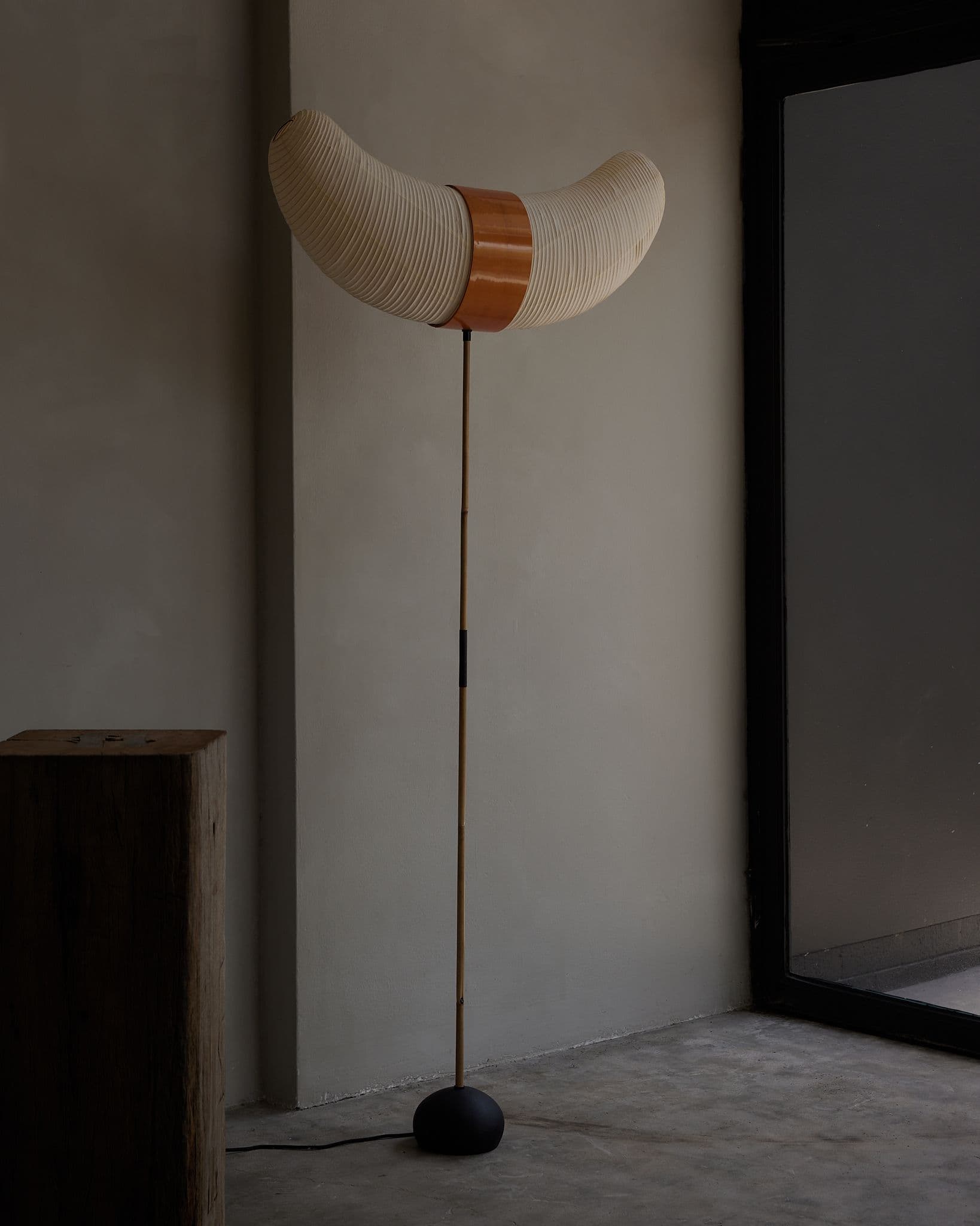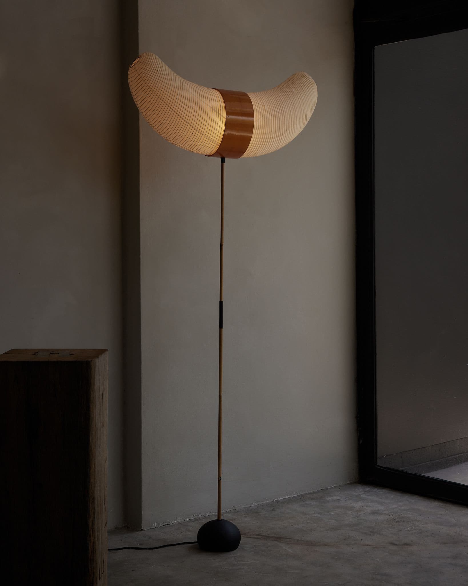 In 1951, Isamu Noguchi created the Akari Light Sculptures, characterized by weightless luminosity. He chose the name“akari,” meaning “light” in Japanese, reflecting both illumination and physical lightness. During a visit to Gifu, Japan, Noguchi sketched his first Akari designs, eventually creating over 100 models. Each luminaire is handcrafted in the Ozeki workshop using traditional techniques. Bamboo rods are stretched across Noguchi’s original wooden forms, then covered with washi paper strips. The shade is folded and packed in flat boxes. The Akari Light Sculptures are marked with a stylized sun-and-moon logo, guaranteeing authenticity.