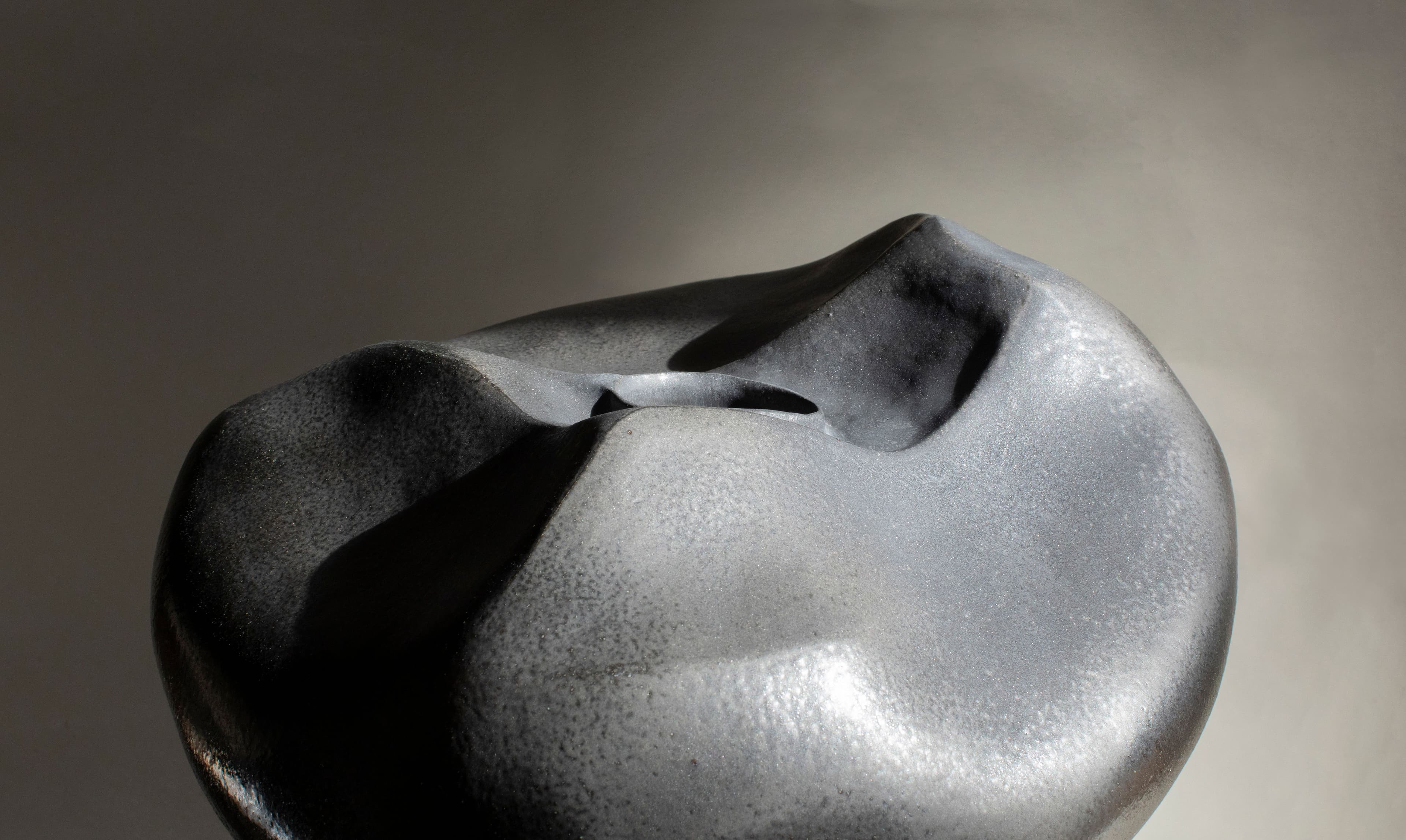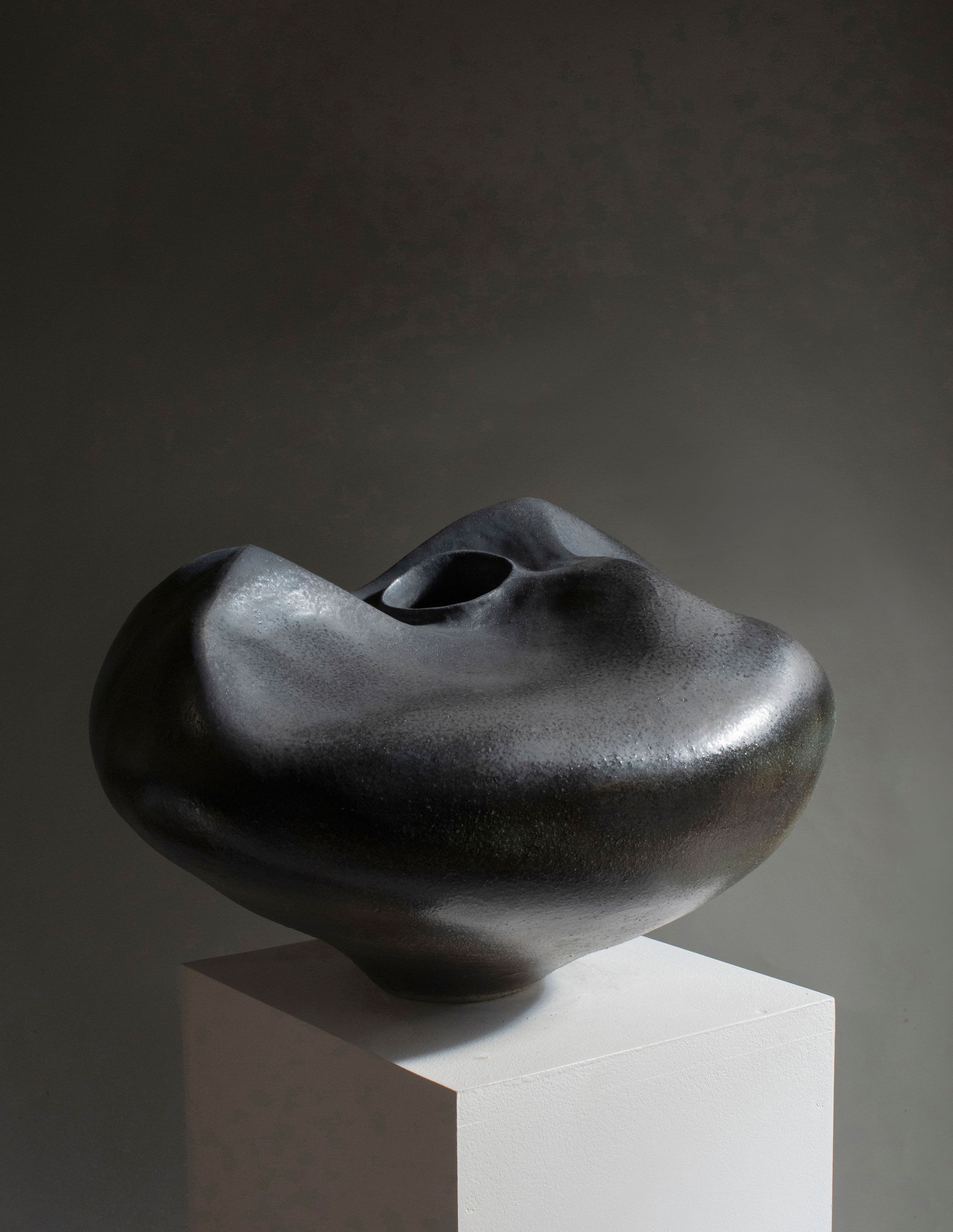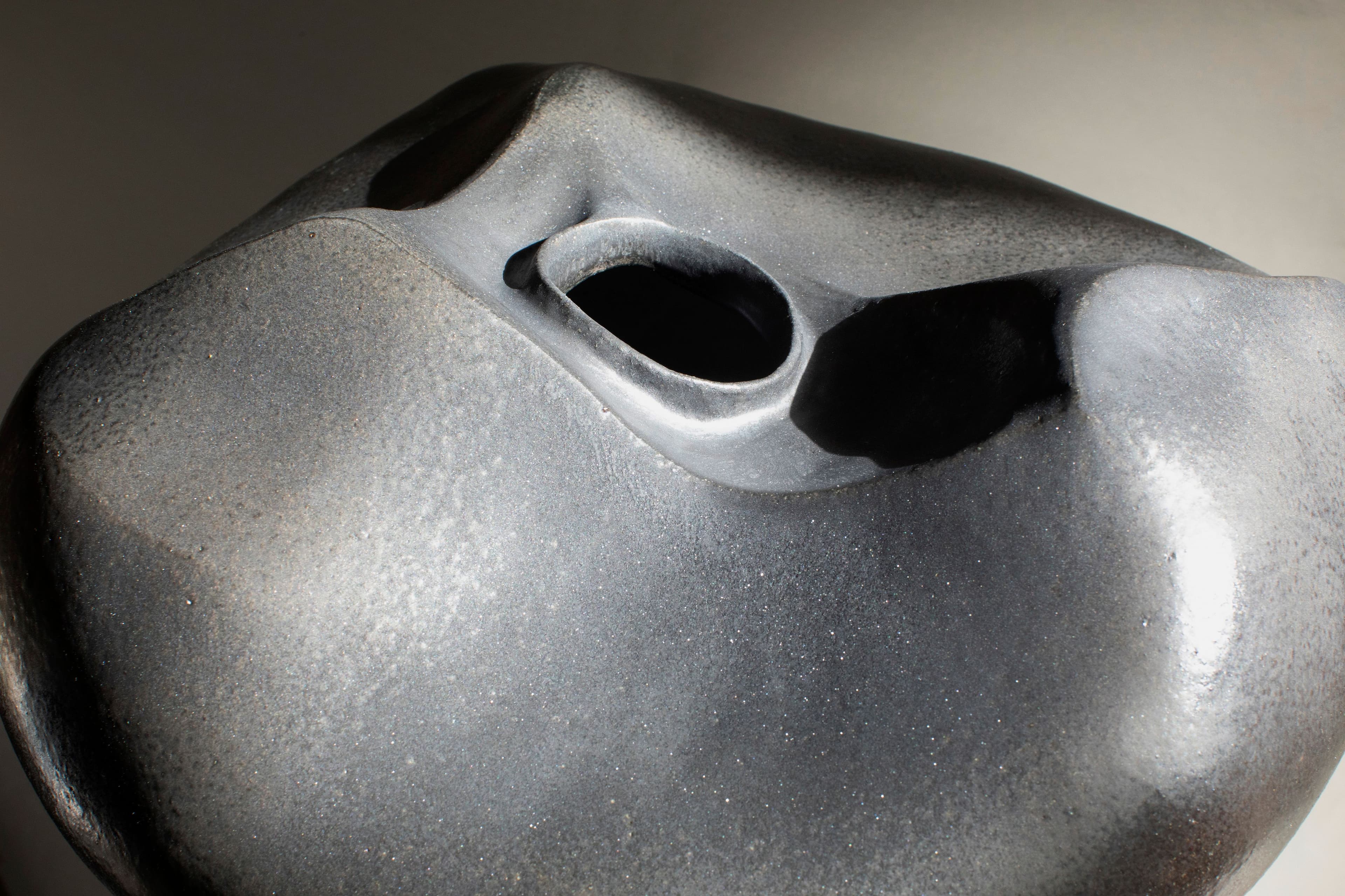 A form with equally voluminous round and sharp edges. Please note: The white dots are sparkles from the reflection of the sunlight. The glaze has a