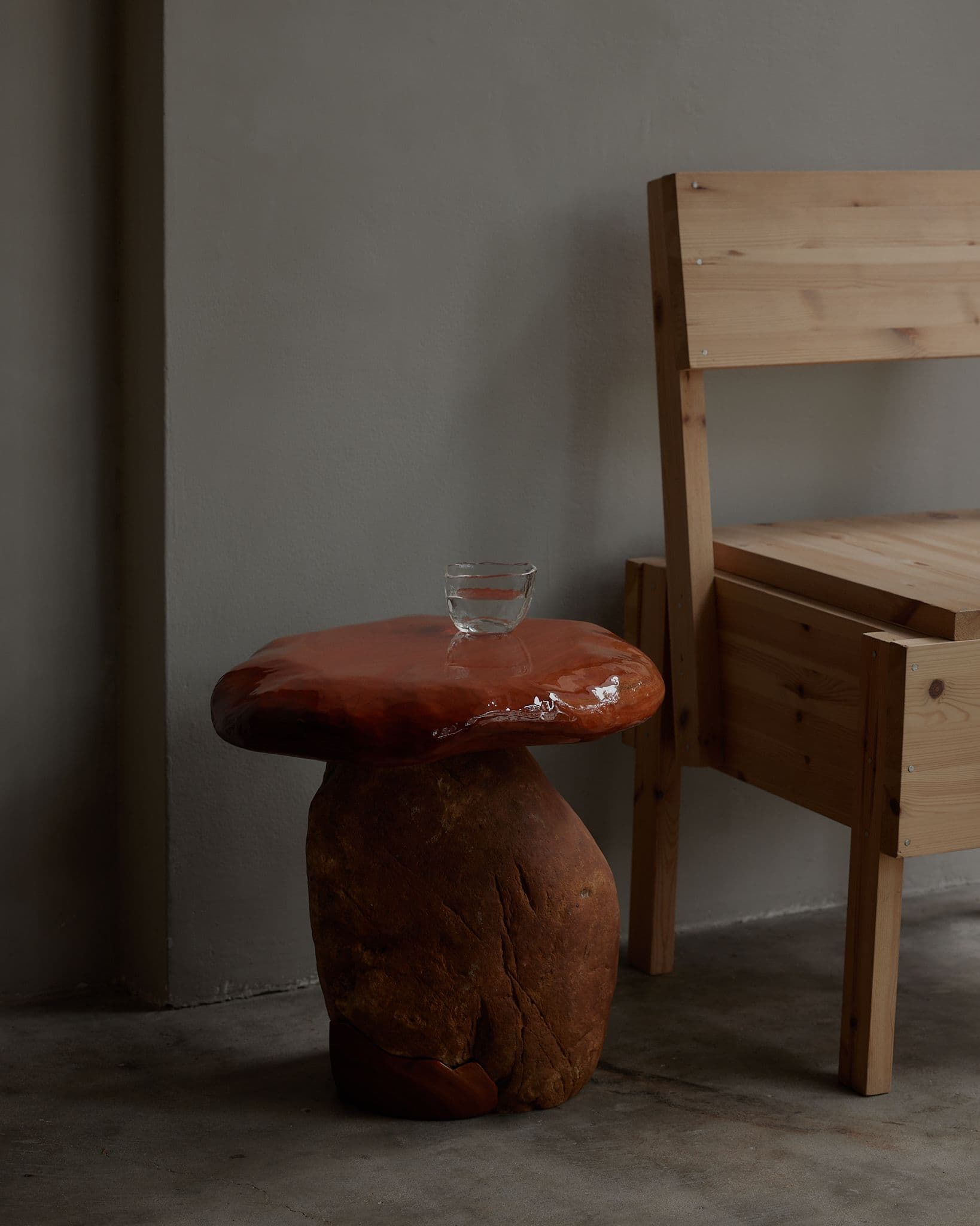 A collaboration between Batten and Kamp and sculptor/architect Henry D’ath. Natural shapes and imperfections of the wood are subtly exaggerated through slow, intuitive hand carving. A dialogue of irregularities between wood and stone.