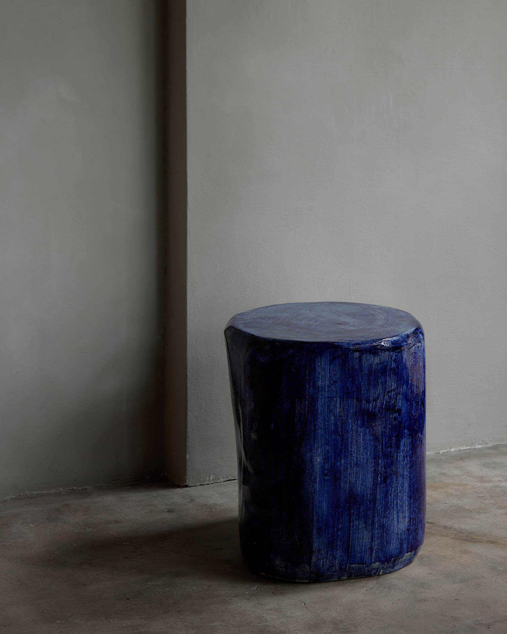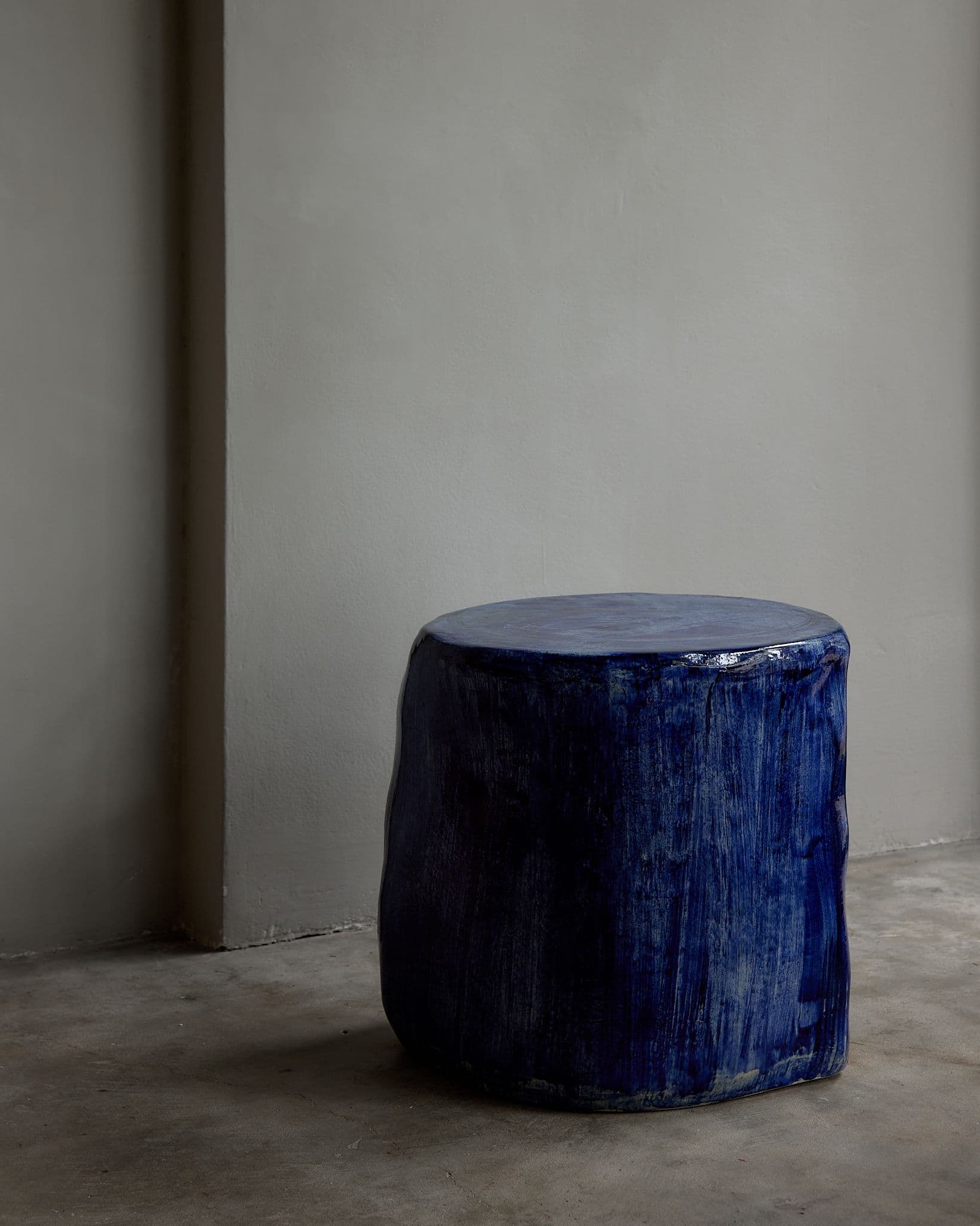 Hand-sculpted ceramic side table with an organic shape made in Project 213A's in-house ceramic workshop. Finished in a contemporary custom glaze. Each piece is unique due to its handmade nature, shapes and shades vary slightly.