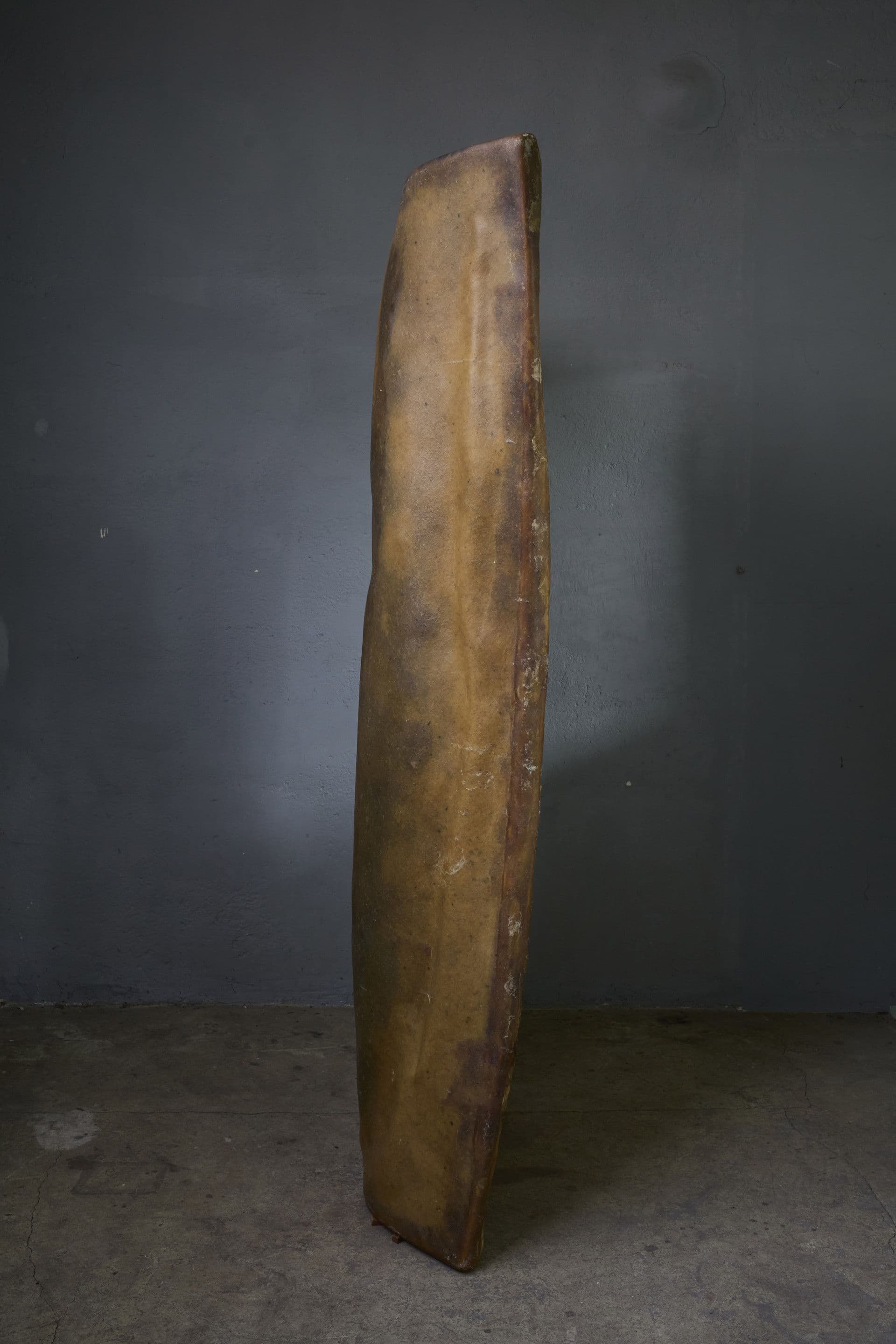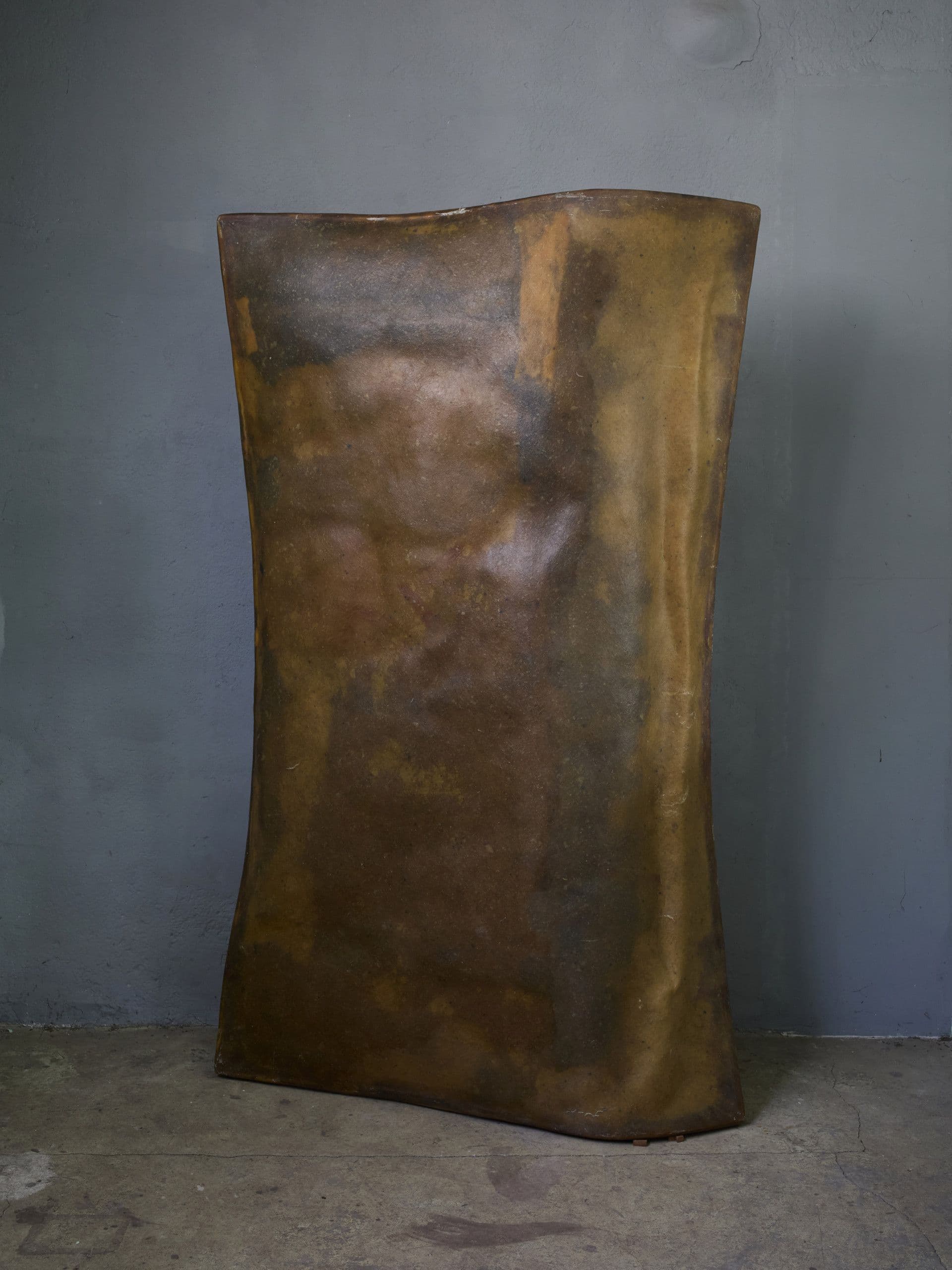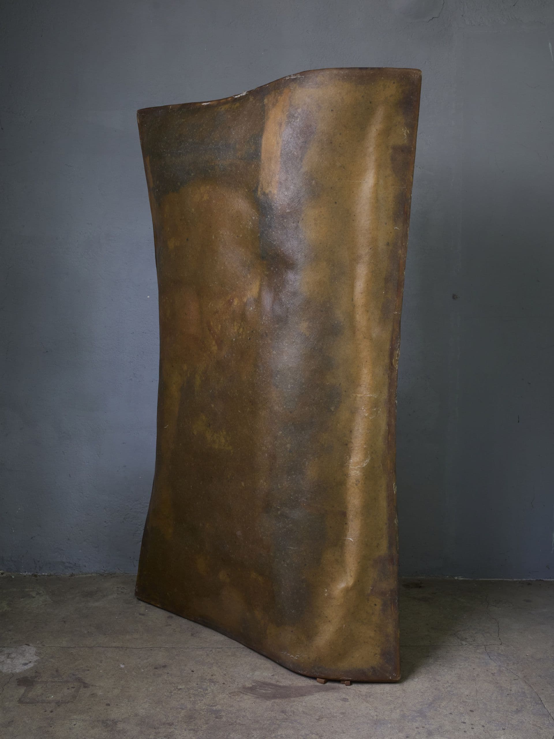 The monumental screen is as much a surface as it is a sculpture, playing on a scale that is unprecedented for leatherwork, which is usually limited to the size of the leather itself. The deformation of the canvas, the random colours of the different skins, and the evolution of the surface and form over time operate as a constant revelation. In a form as simple as a leaf, the material of the Dabgar expresses itself and becomes living matter.