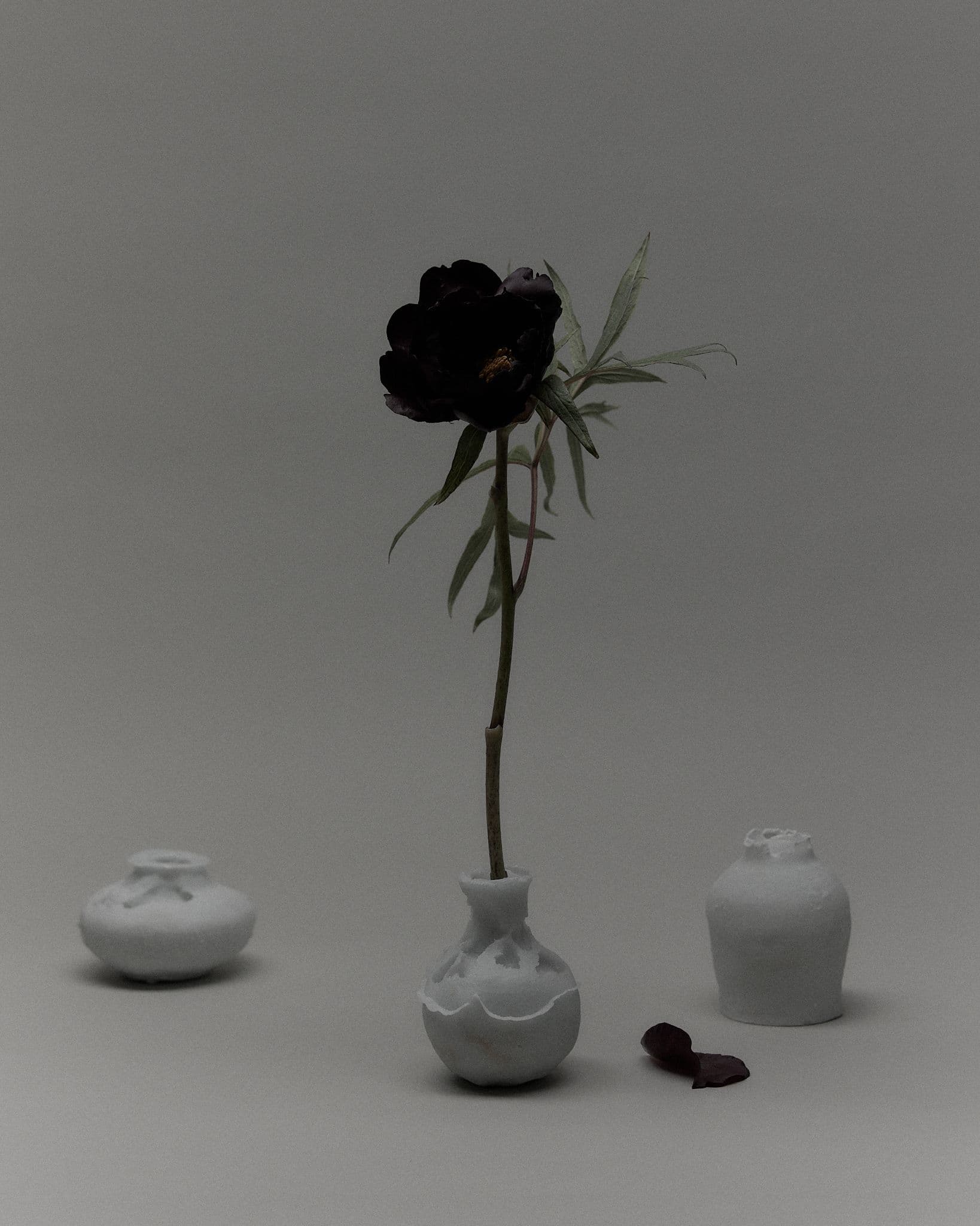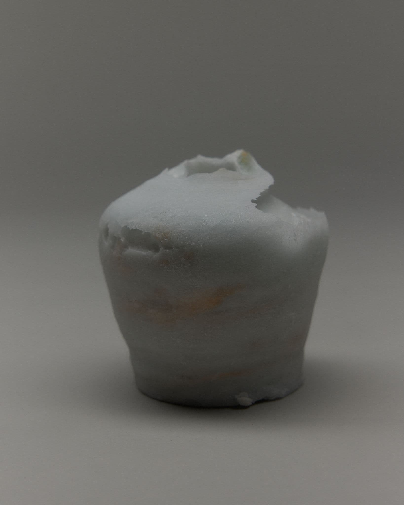 Through erosion and boundary exploration, Hiroki balances loveliness with complexity, extracting delicate forms from talc and infusing glass with mineral allure.