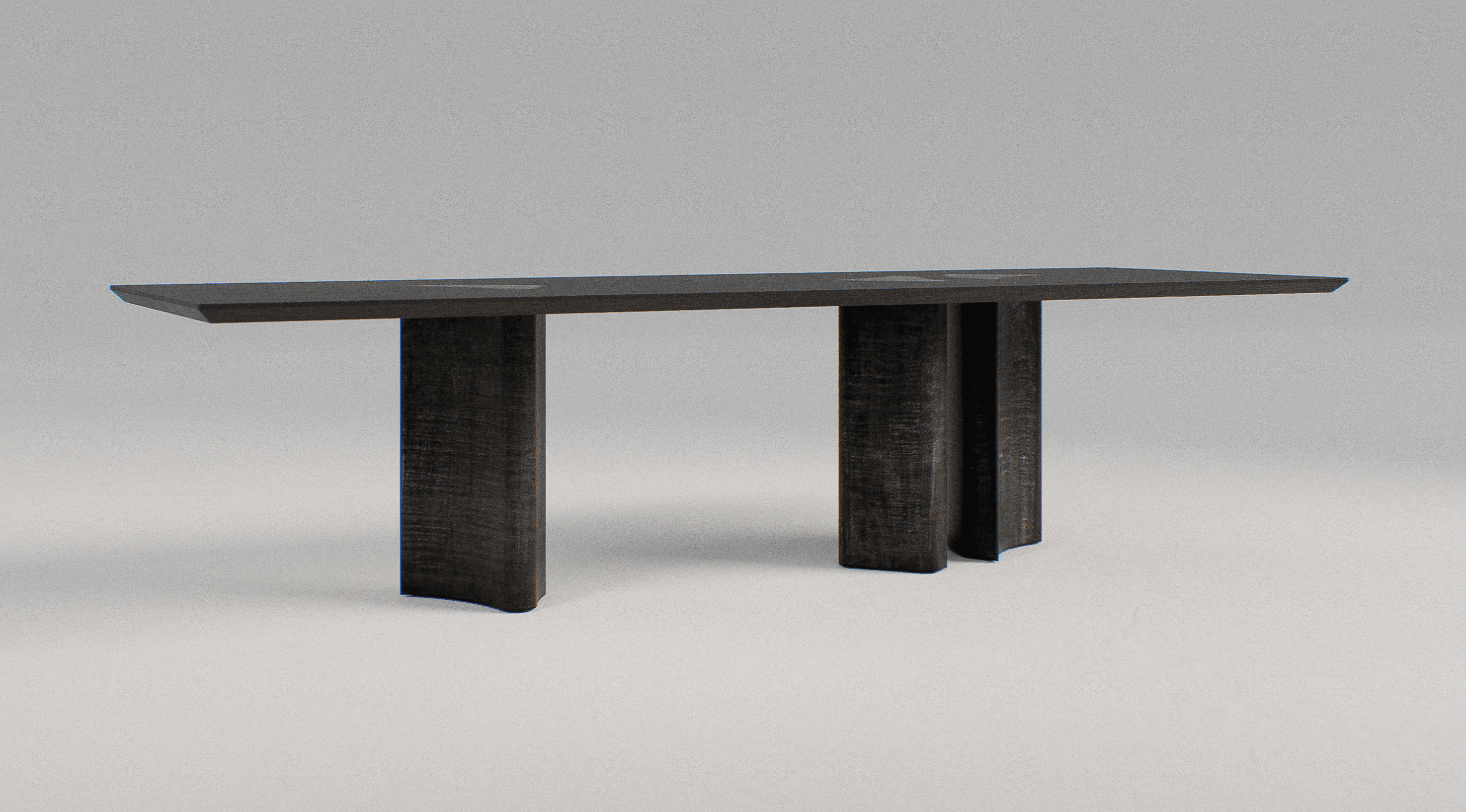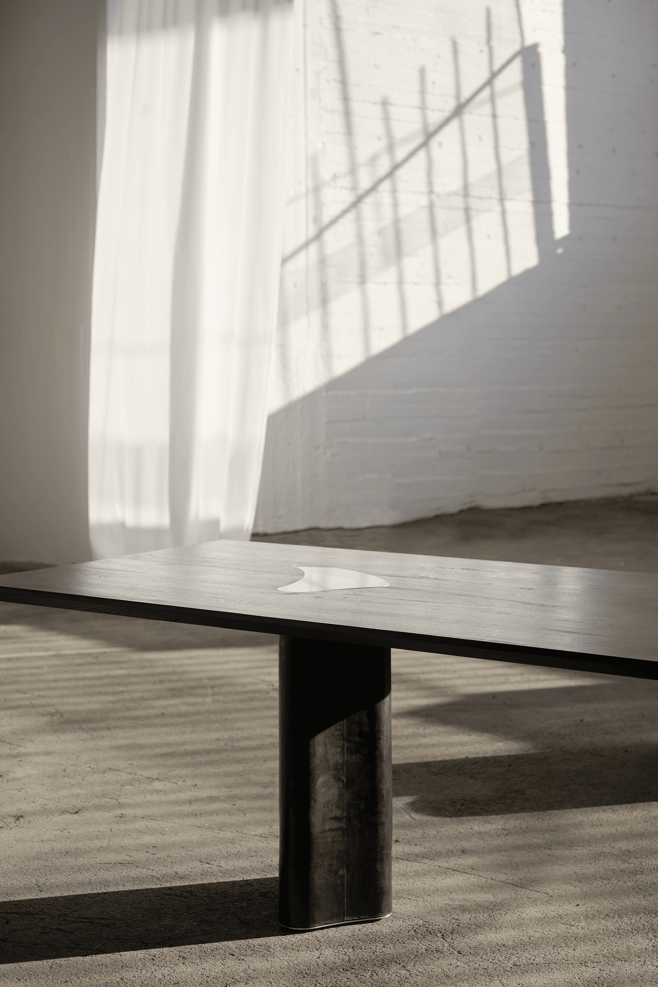 The Fragment Collection is a series of sculptural furniture pieces characterised by their irregular and asymmetrical shapes with classical influences. These unique pieces predominantly feature vegetable-tanned leather, a material that serves as an ideal canvas due to its porosity and natural blemishes. In creating the textures for this collection, various artisanal techniques are employed. The leather canvas is meticulously scraped, manipulated, and infused with natural pigments to achieve a distinctive, tactile surface. This hands-on approach allows each piece to embody a raw and organic aesthetic, highlighting the inherent beauty of the leather.