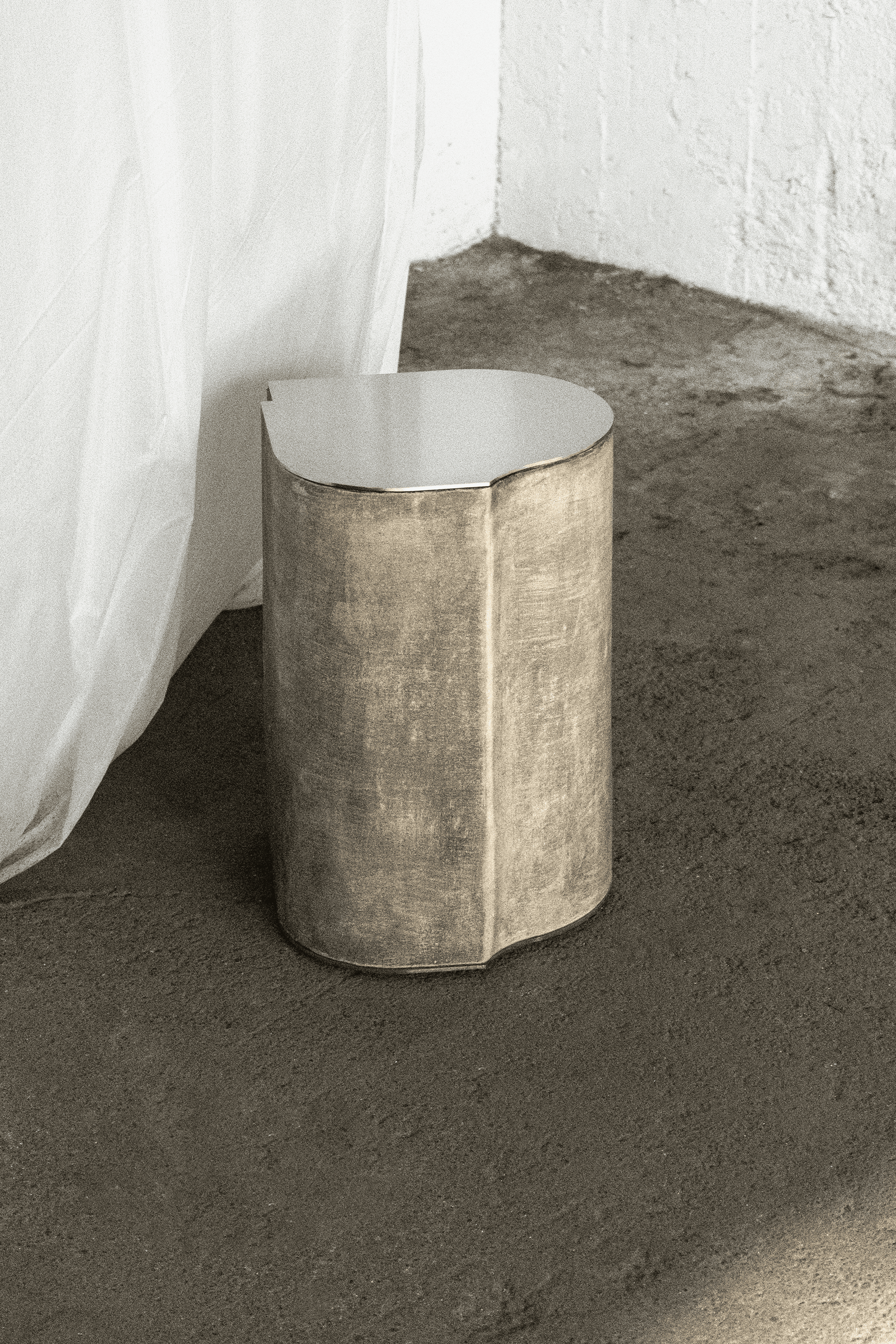 The Fragment Collection is a series of sculptural furniture pieces characterised by their irregular and asymmetrical shapes with classical influences. These unique pieces predominantly feature vegetable-tanned leather, a material that serves as an ideal canvas due to its porosity and natural blemishes. In creating the textures for this collection, various artisanal techniques are employed. The leather canvas is meticulously scraped, manipulated, and infused with natural pigments to achieve a distinctive, tactile surface. This hands-on approach allows each piece to embody a raw and organic aesthetic, highlighting the inherent beauty of the leather.