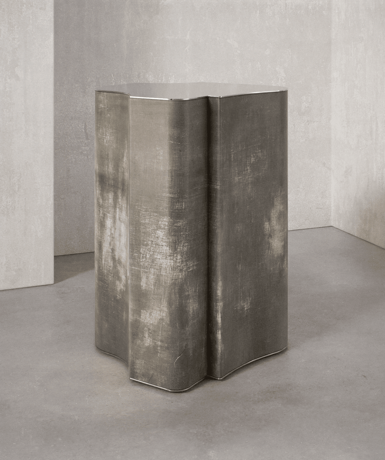 The Fragment Collection is a series of sculptural furniture pieces characterised by their irregular and asymmetrical shapes with classical influences. These unique pieces predominantly feature vegetable-tanned leather, a material that serves as an ideal canvas due to its porosity and natural blemishes. In creating the textures for this collection, various artisanal techniques are employed. The leather canvas is meticulously scraped, manipulated, and infused with natural pigments to achieve a distinctive, tactile surface. This hands-on approach allows each piece to embody a raw and organic aesthetic, highlighting the inherent beauty of the leather.