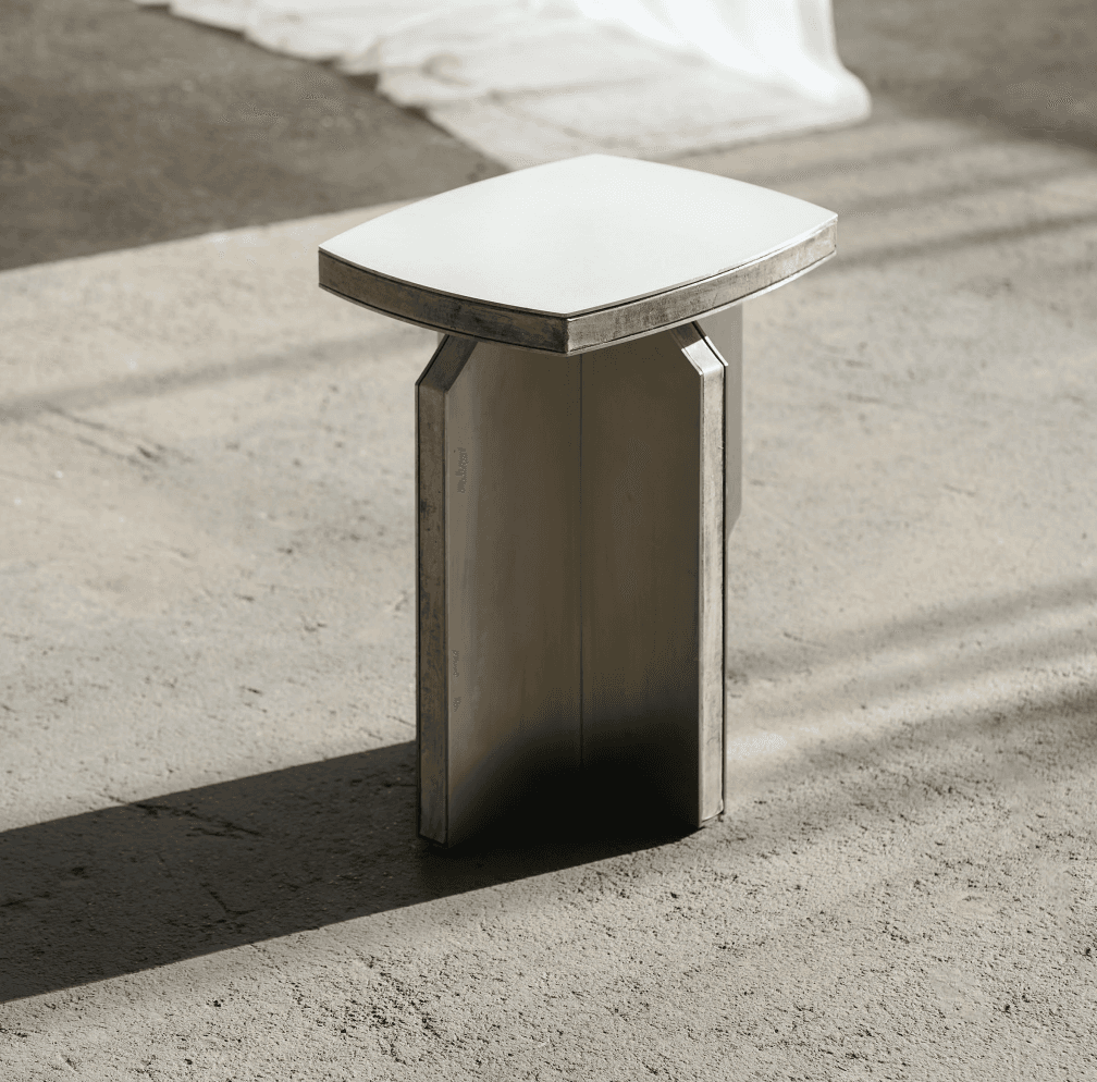 The Fragment Collection is a series of sculptural furniture pieces characterised by their irregular and asymmetrical shapes with classical influences. These unique pieces predominantly feature vegetable-tanned leather, a material that serves as an ideal canvas due to its porosity and natural blemishes. In creating the textures for this collection, various artisanal techniques are employed. The leather canvas is meticulously scraped, manipulated, and infused with natural pigments to achieve a distinctive, tactile surface. This hands-on approach allows each piece to embody a raw and organic aesthetic, highlighting the inherent beauty of the leather.