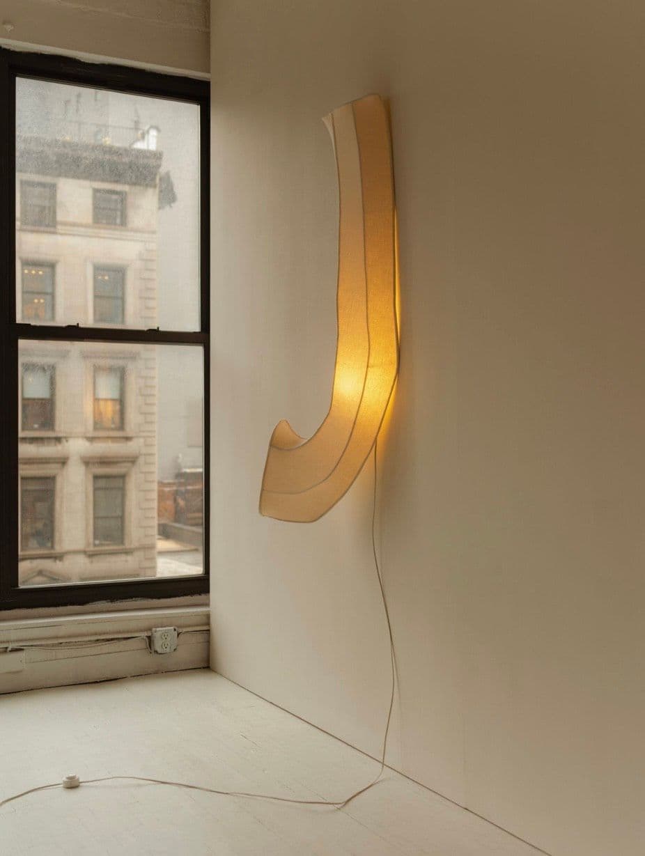 Light sculptures made in hand-stretched fabric over shaped steel, each of which uniquely references and rescales bone frag- ments—residue lovingly collected from dinner parties—like anatomy for illumination.
