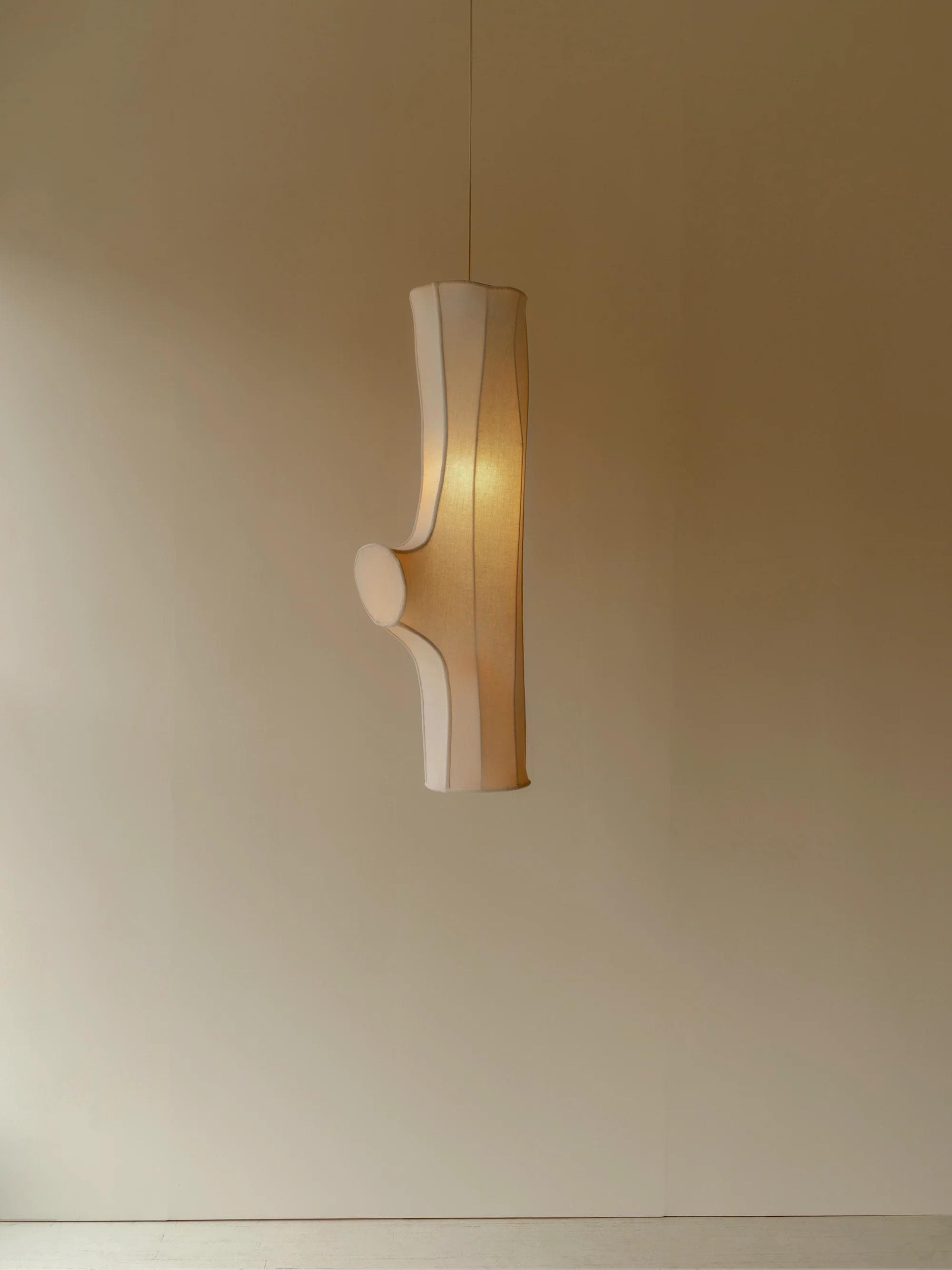 Light sculptures made in hand-stretched fabric over shaped steel, each of which uniquely references and rescales bone frag- ments—residue lovingly collected from dinner parties—like anatomy for illumination.