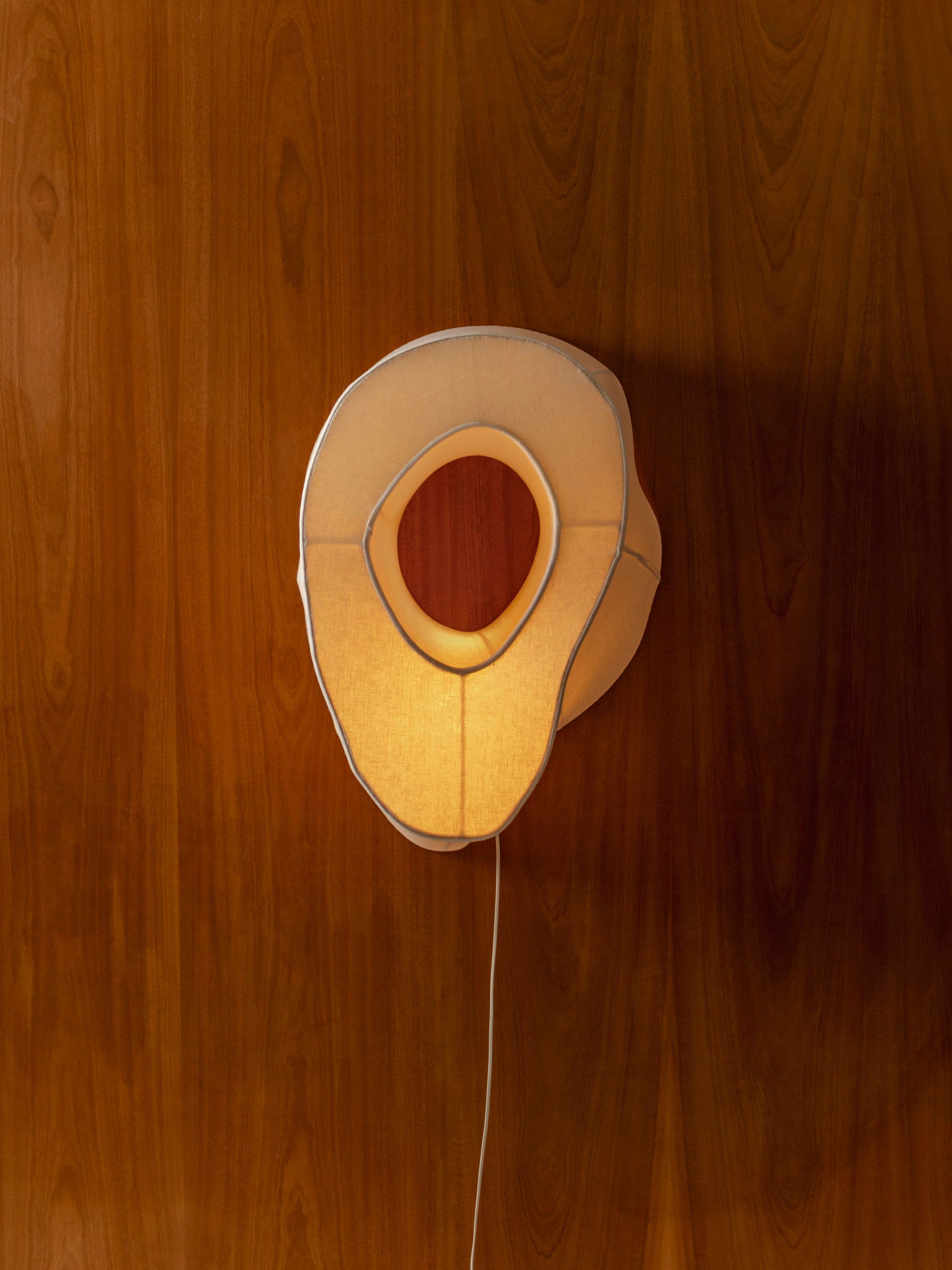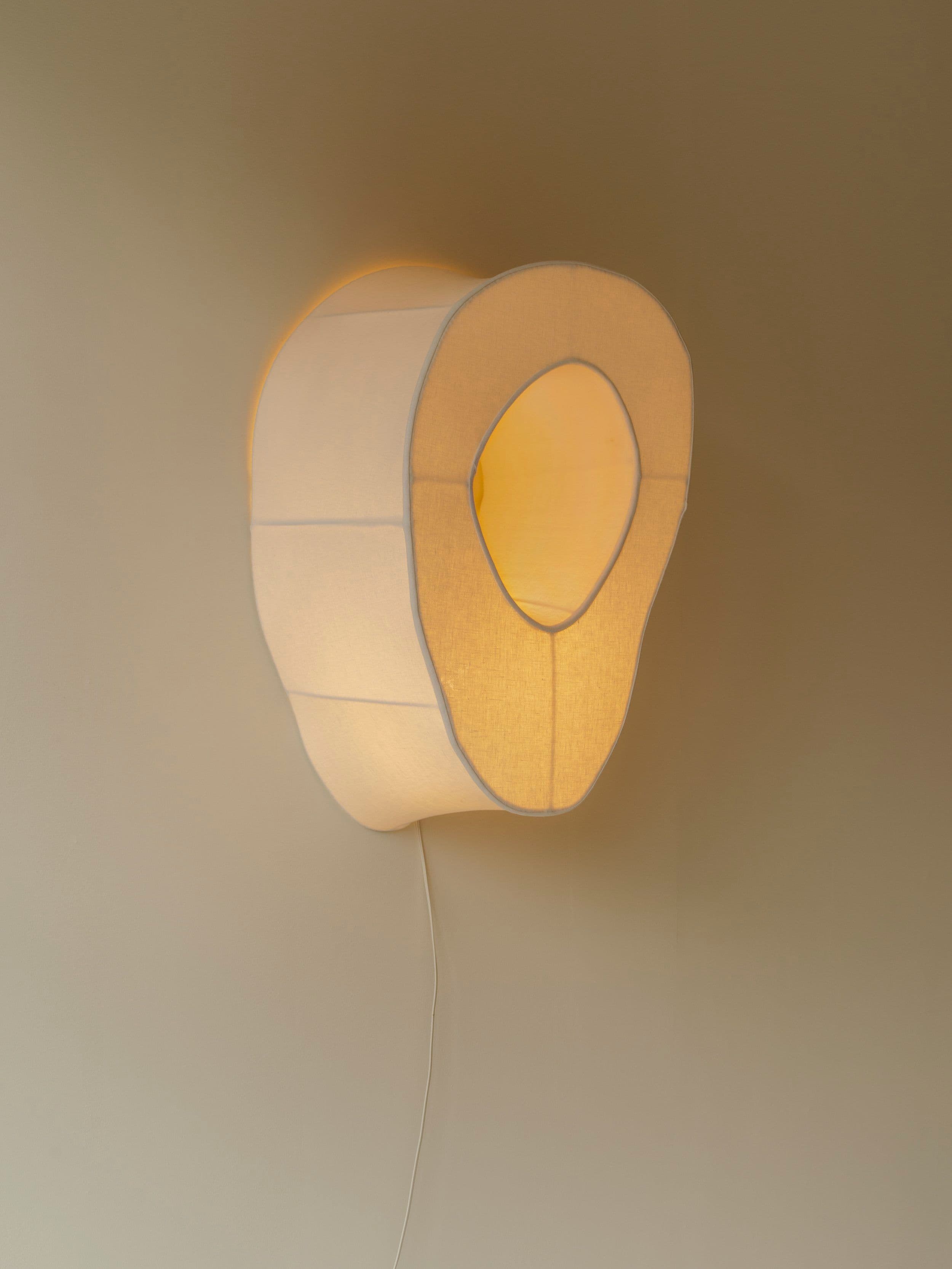 Light sculptures made in hand-stretched fabric over shaped steel, each of which uniquely references and rescales bone frag- ments—residue lovingly collected from dinner parties—like anatomy for illumination.