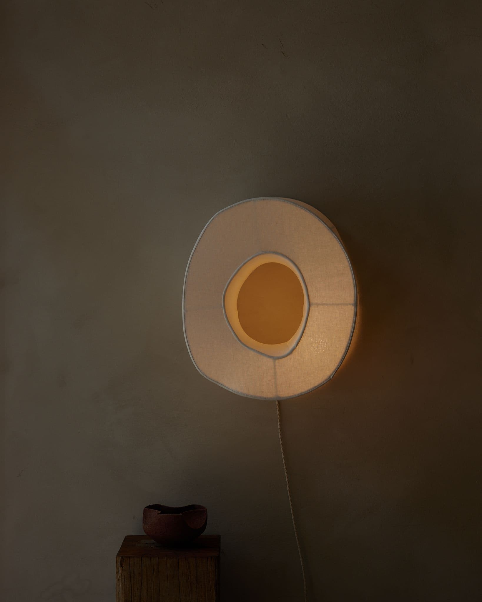 Light sculptures made in hand-stretched fabric over shaped steel, each of which uniquely references and rescales bone frag- ments—residue lovingly collected from dinner parties—like anatomy for illumination.