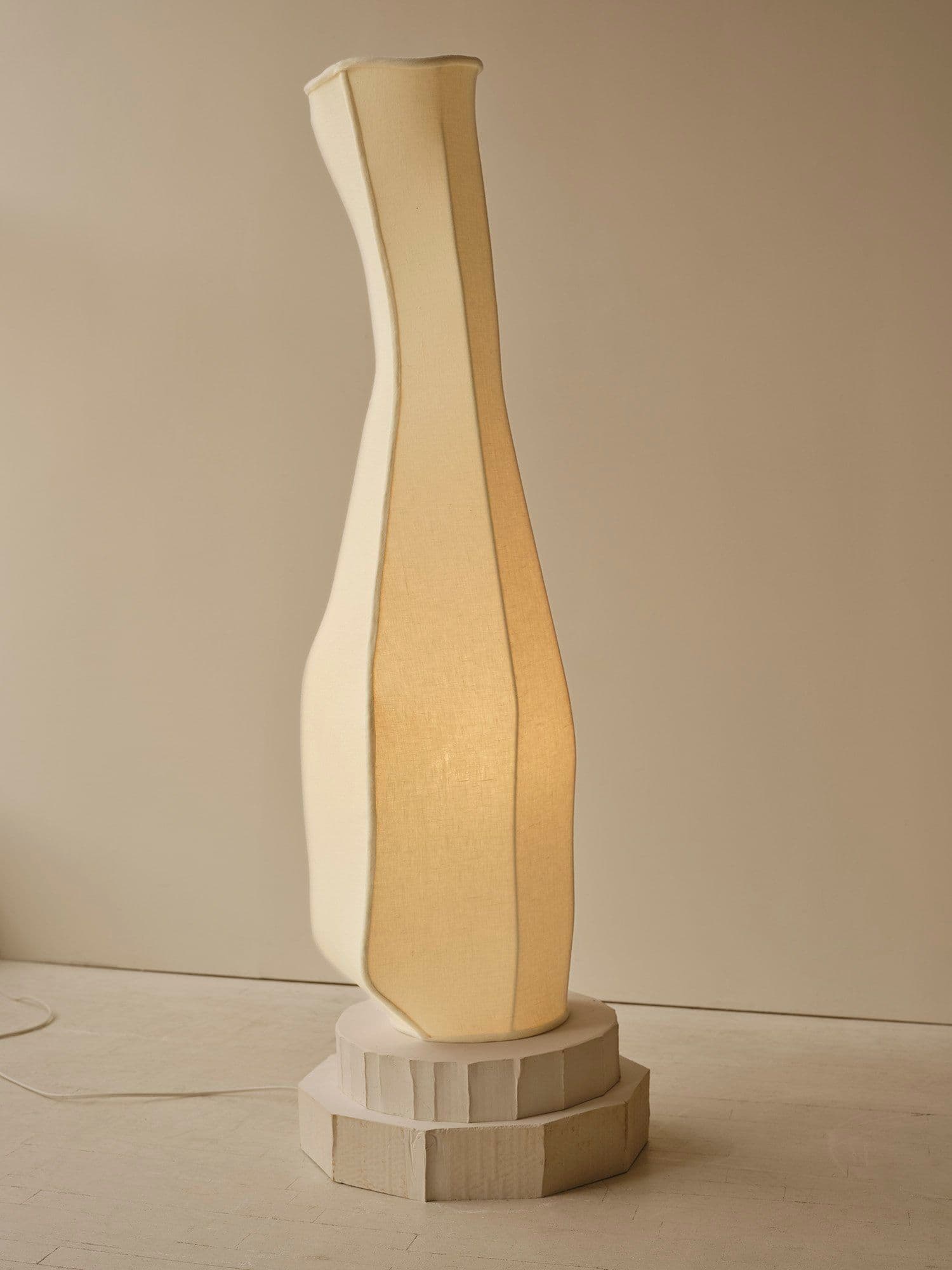 Light sculptures made in hand-stretched fabric over shaped steel, each of which uniquely references and rescales bone frag- ments—residue lovingly collected from dinner parties—like anatomy for illumination.