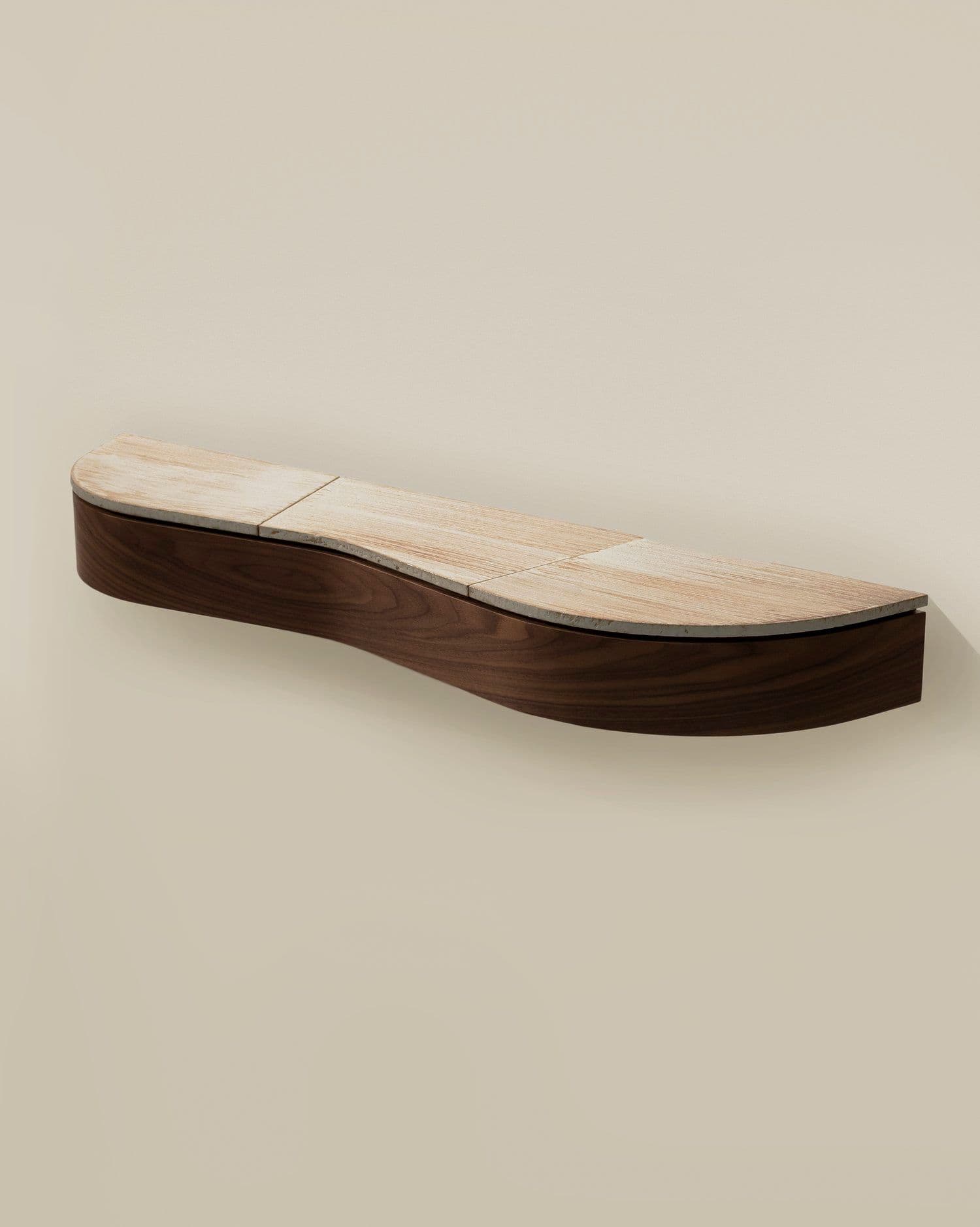 The Ceramic Lison Shelf by Garcé & Dimofski is a lovely, curved hanging shelf with a ceramic top. Simple yet sophisticated, it fits any décor.
