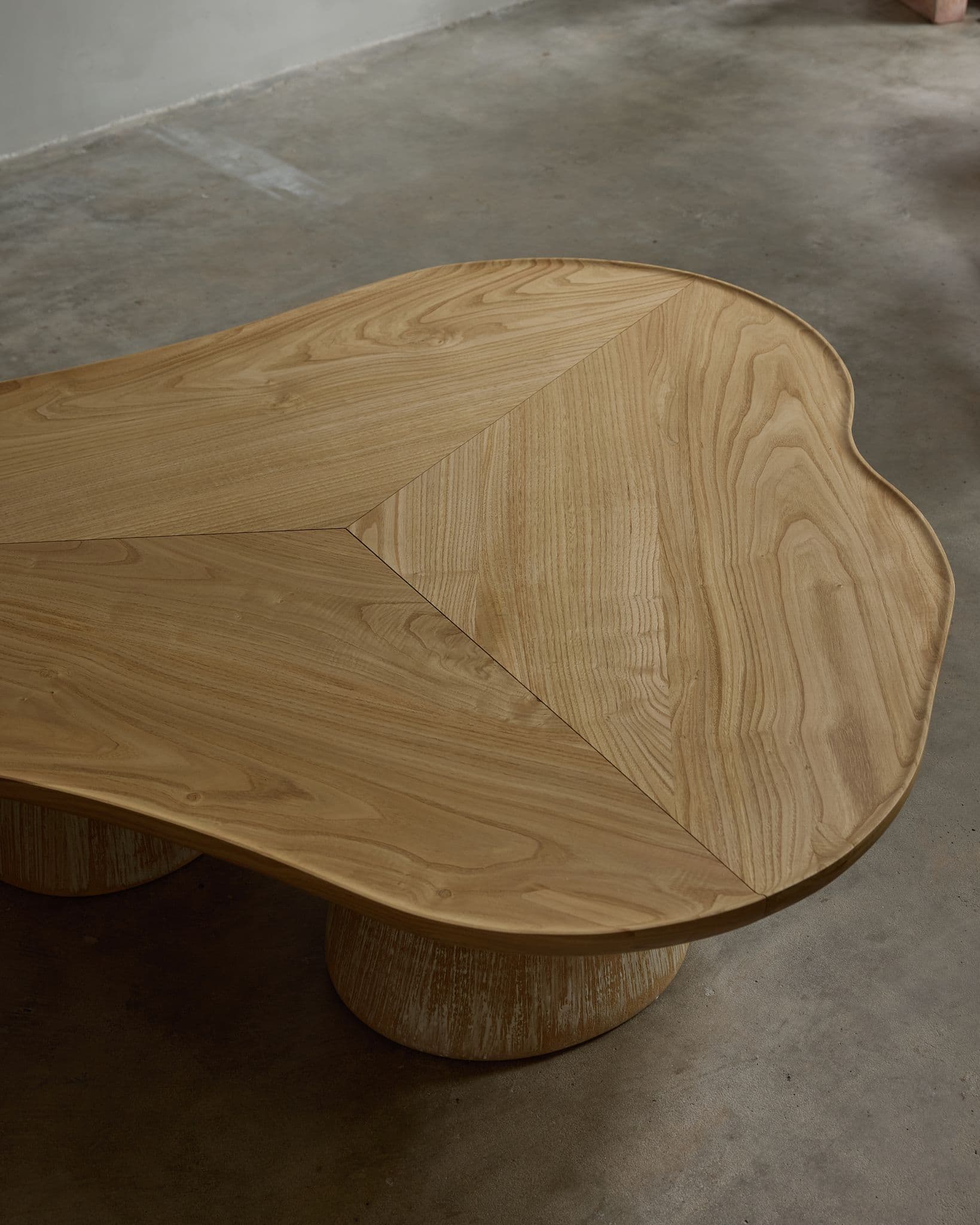 This table is crafted from solid wood, a natural material that responds to temperature and humidity changes by expanding and contracting. Variations in grain, colour, and texture are inherent and predictable. Mimi tables are designed with three joints that allow the wood to expand and contract. Consequently, these joints may vary over time and/or depending on the climate, either shrinking or expanding.