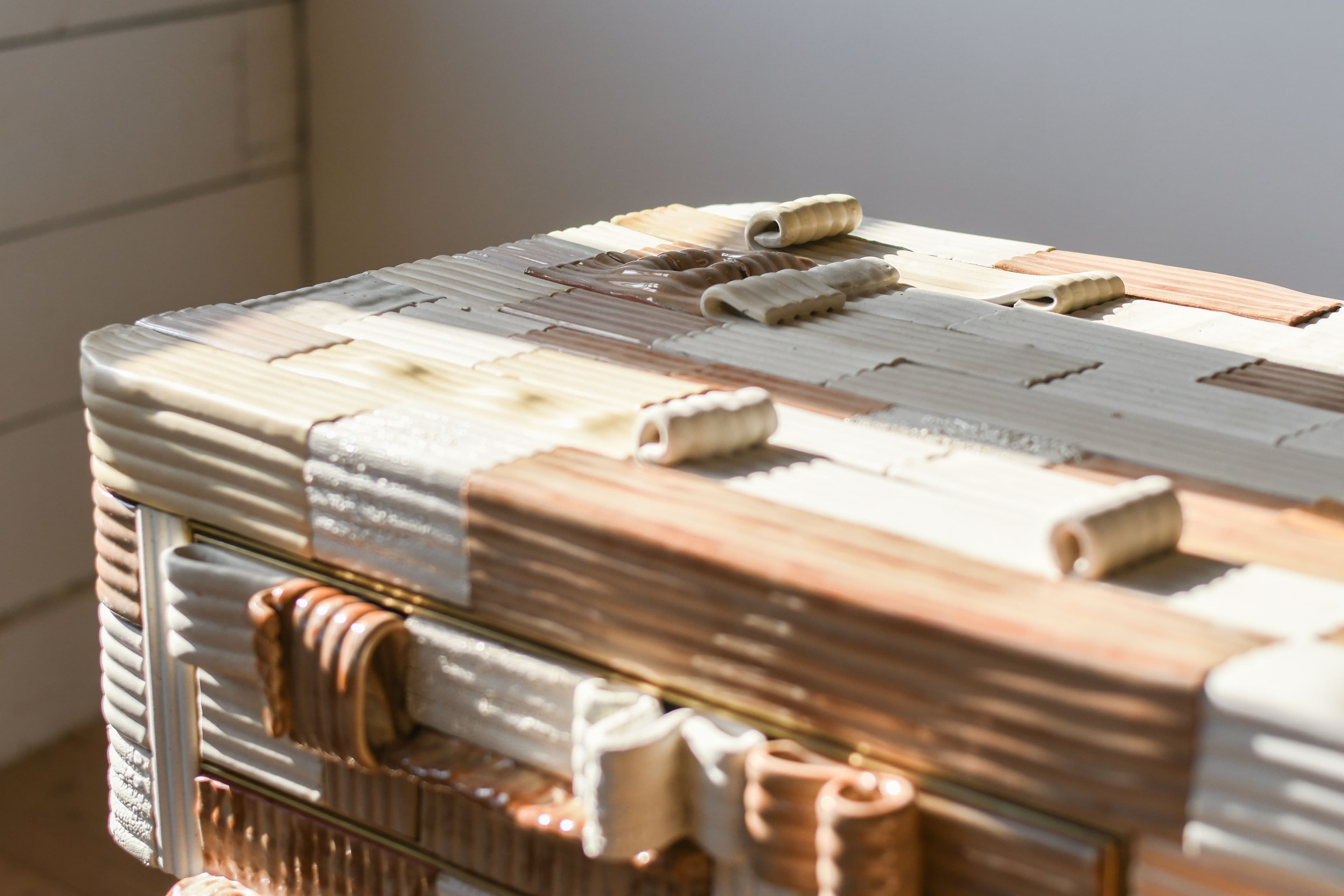 Treasure chests, tombs, urns, bank vaults, shipping containers. Sarcophagus. As a species we seem to think we are owners of things, land, and property. Our tiled gym locker scaled sarcophagi are built in the same spirit, but encourage you to realize your duty as custodian of few, precious talisman which shift your viewfinder of life. Whatever you choose to put in this illicit cabinet of worship, make it of the element which blows your hair back, makes your heart race, or simply grounds you in the delight of being alive.