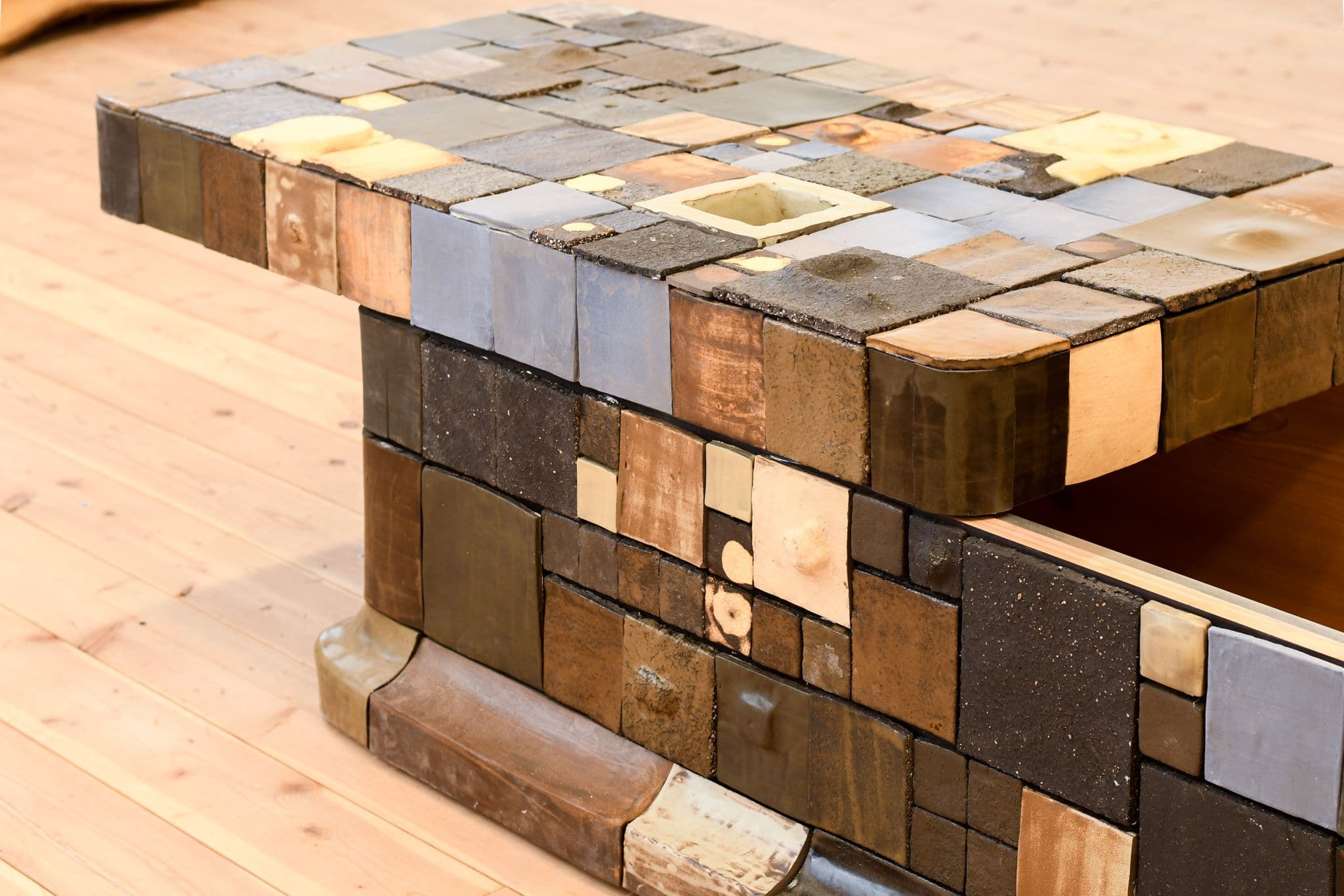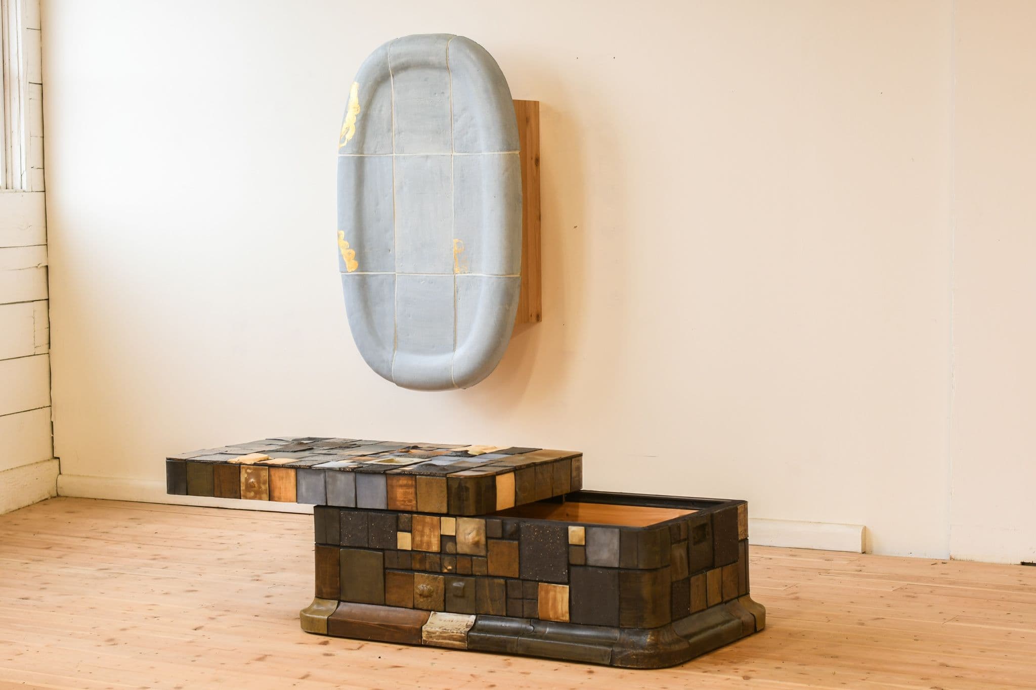 Treasure chests, tombs, urns, bank vaults, shipping containers. Sarcophagus. As a species we seem to think we are owners of things, land, and property. Our tiled gym locker scaled sarcophagi are built in the same spirit, but encourage you to realize your duty as custodian of few, precious talisman which shift your viewfinder of life. Whatever you choose to put in this illicit cabinet of worship, make it of the element which blows your hair back, makes your heart race, or simply grounds you in the delight of being alive.
