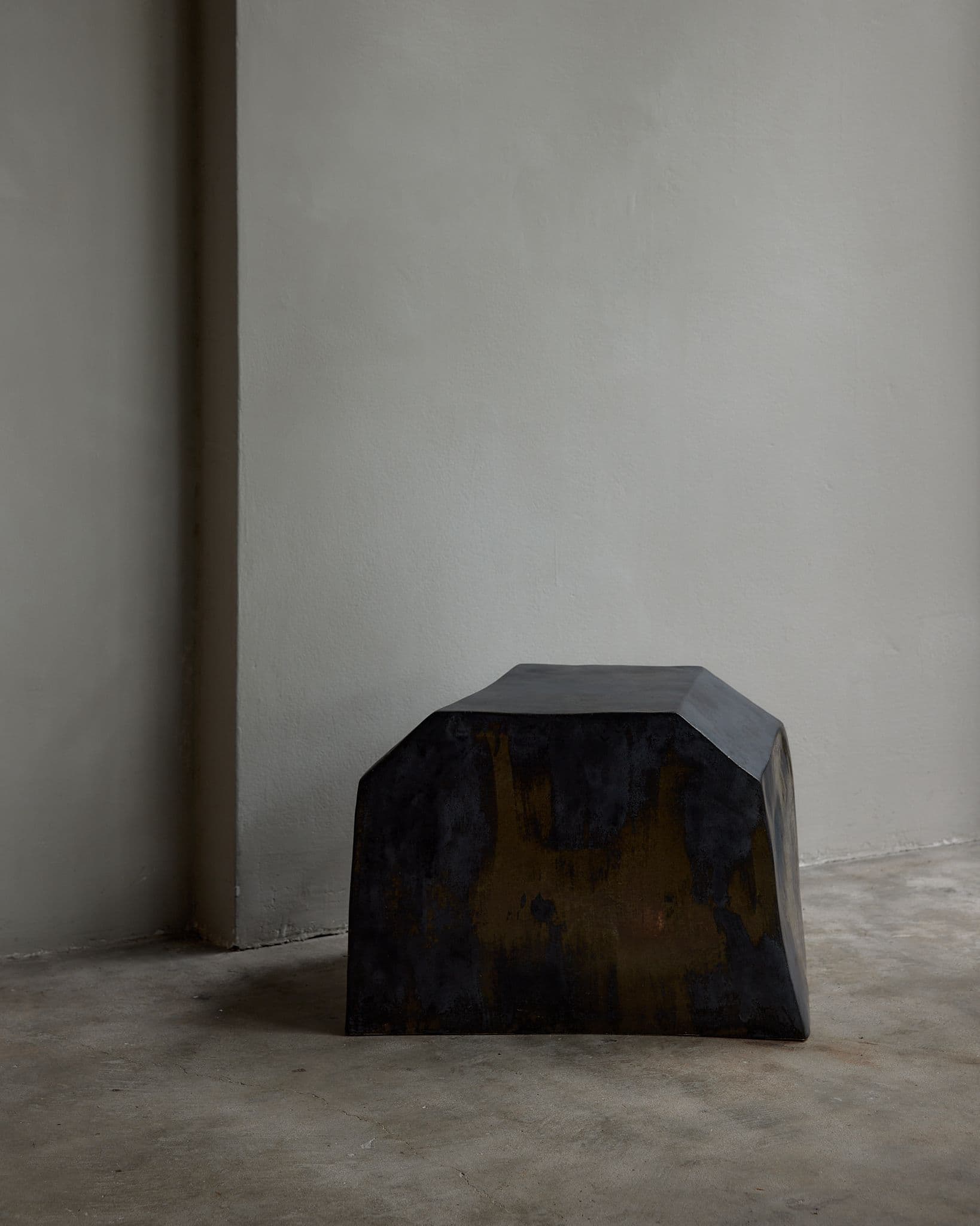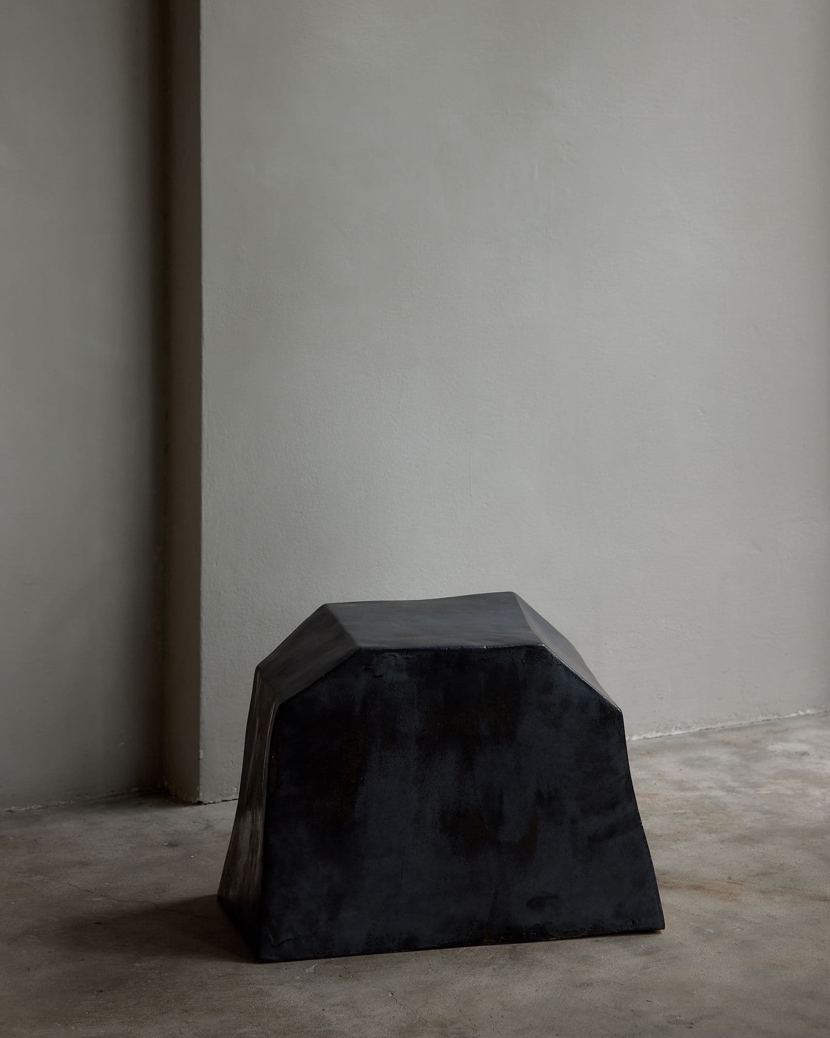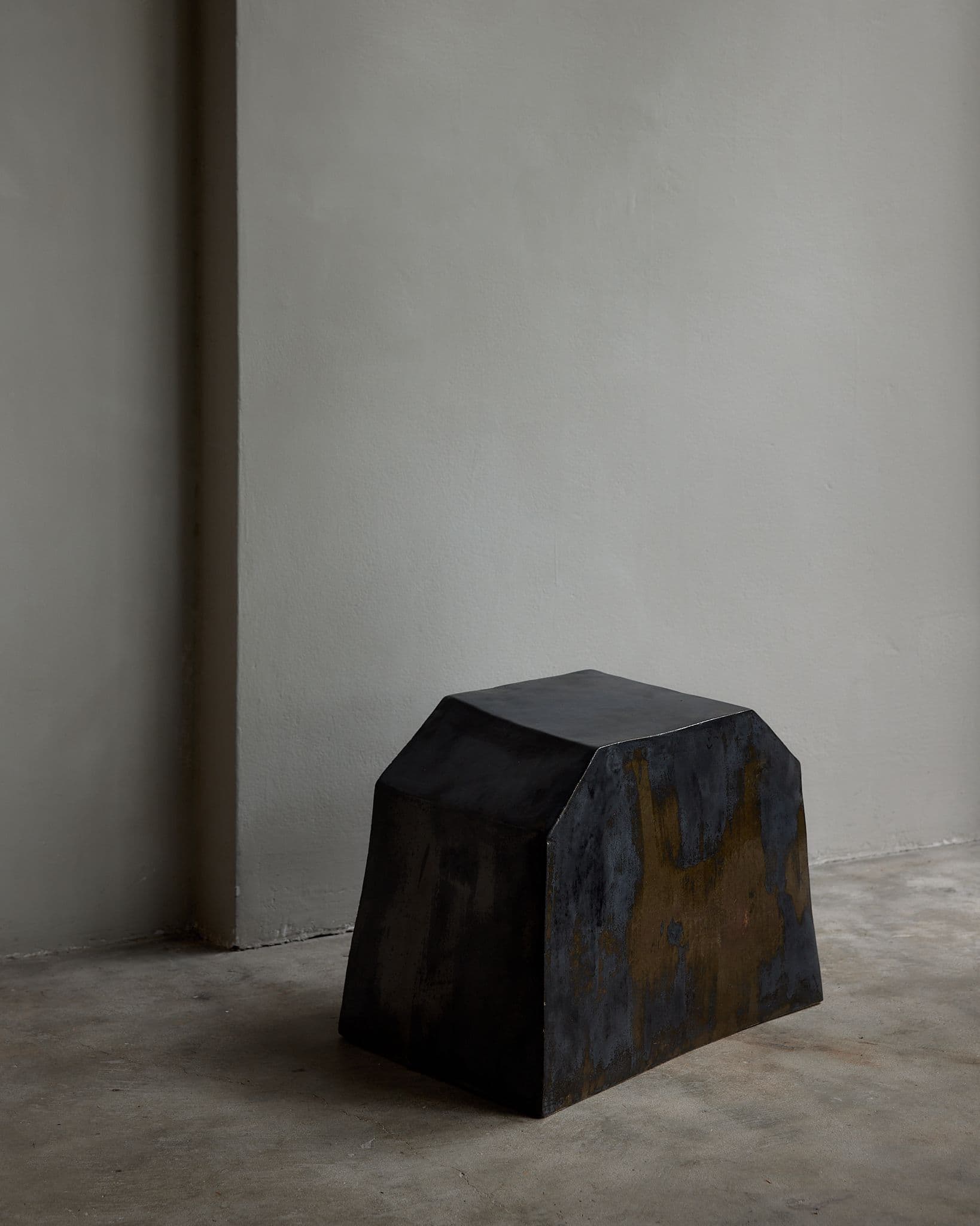 Hand-sculpted ceramic side table with an organic shape made in Project 213A's in-house ceramic workshop. Finished in a contemporary custom glaze. Each piece is unique due to its handmade nature, shapes and shades vary slightly.