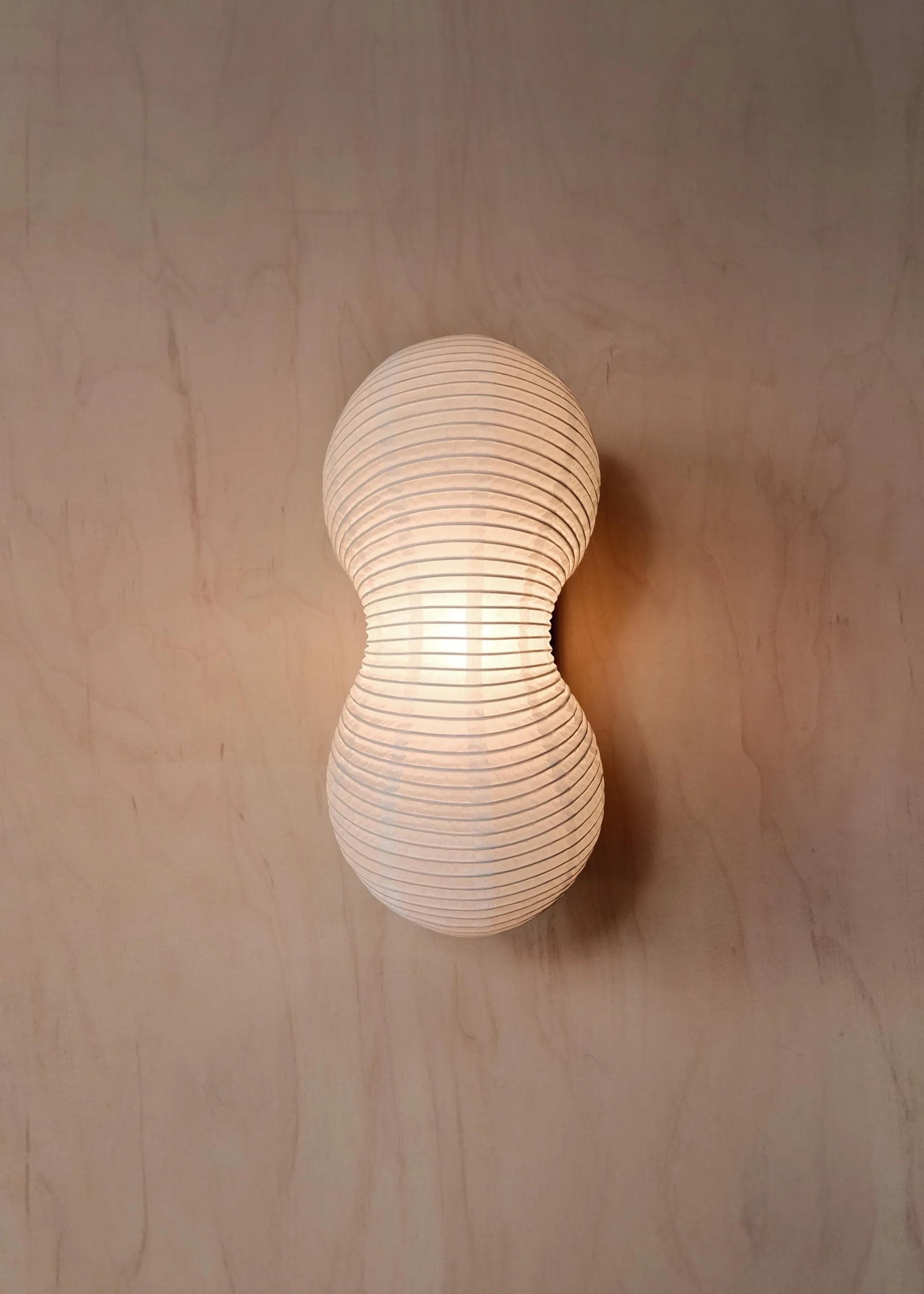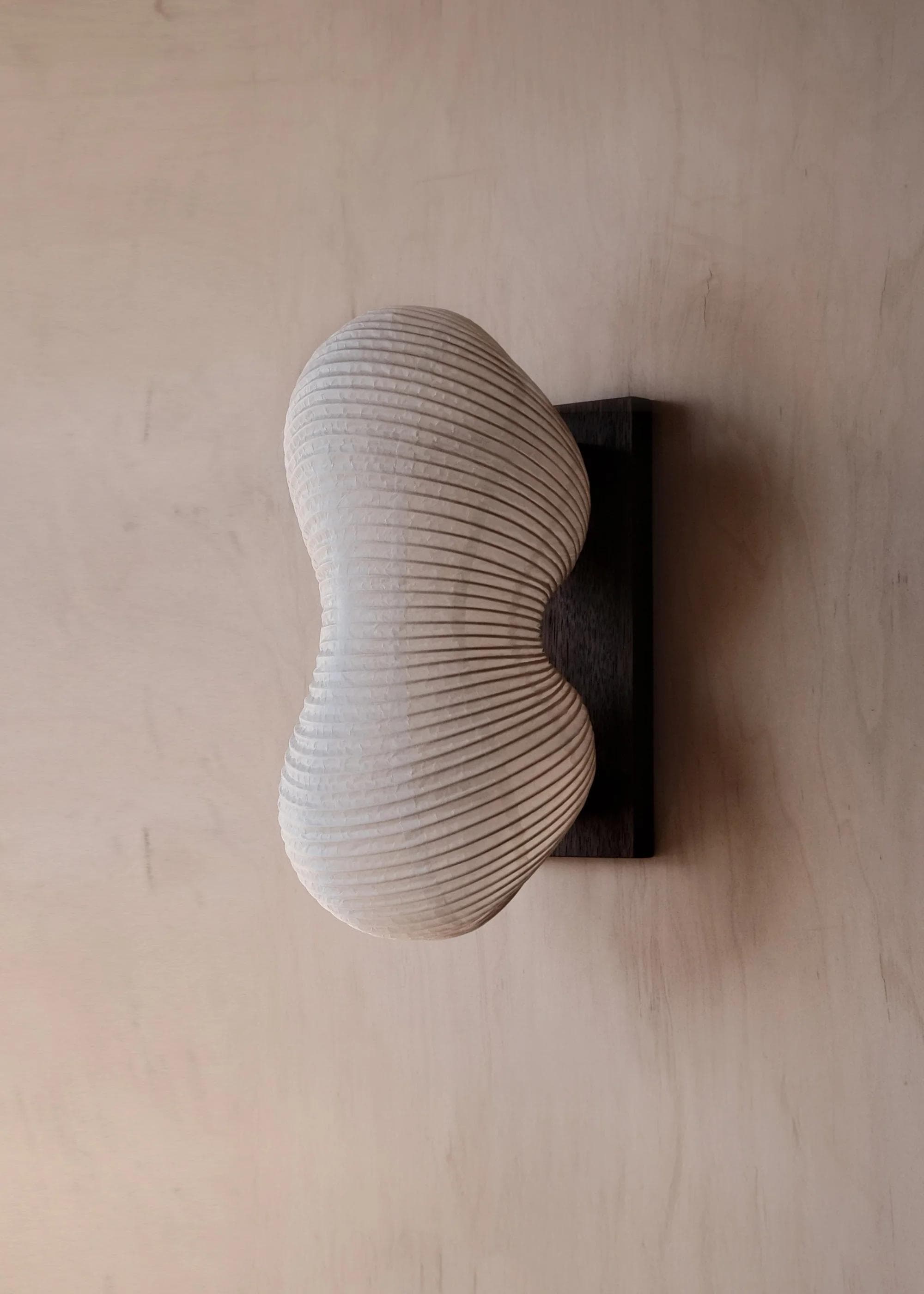 The surface-mounted edition in the Souvenir series, with a display of the undulating paper form in its most expressive view. The sconce highlights the beauty of pleated lantern craftsmanship in minimal lines and a soft, organic shape. A bold statement with quiet language.
