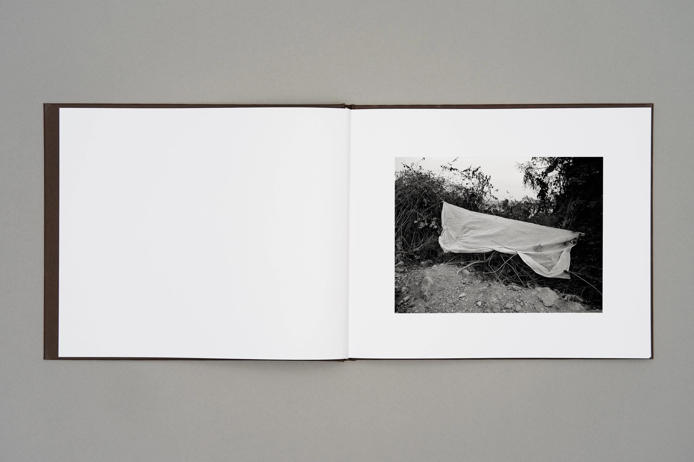Black/white offset printed paperbound hardcover. Linen thread bound. Authentic tip-in image on front cover. Dustcover in black/white offset. Beige headband.