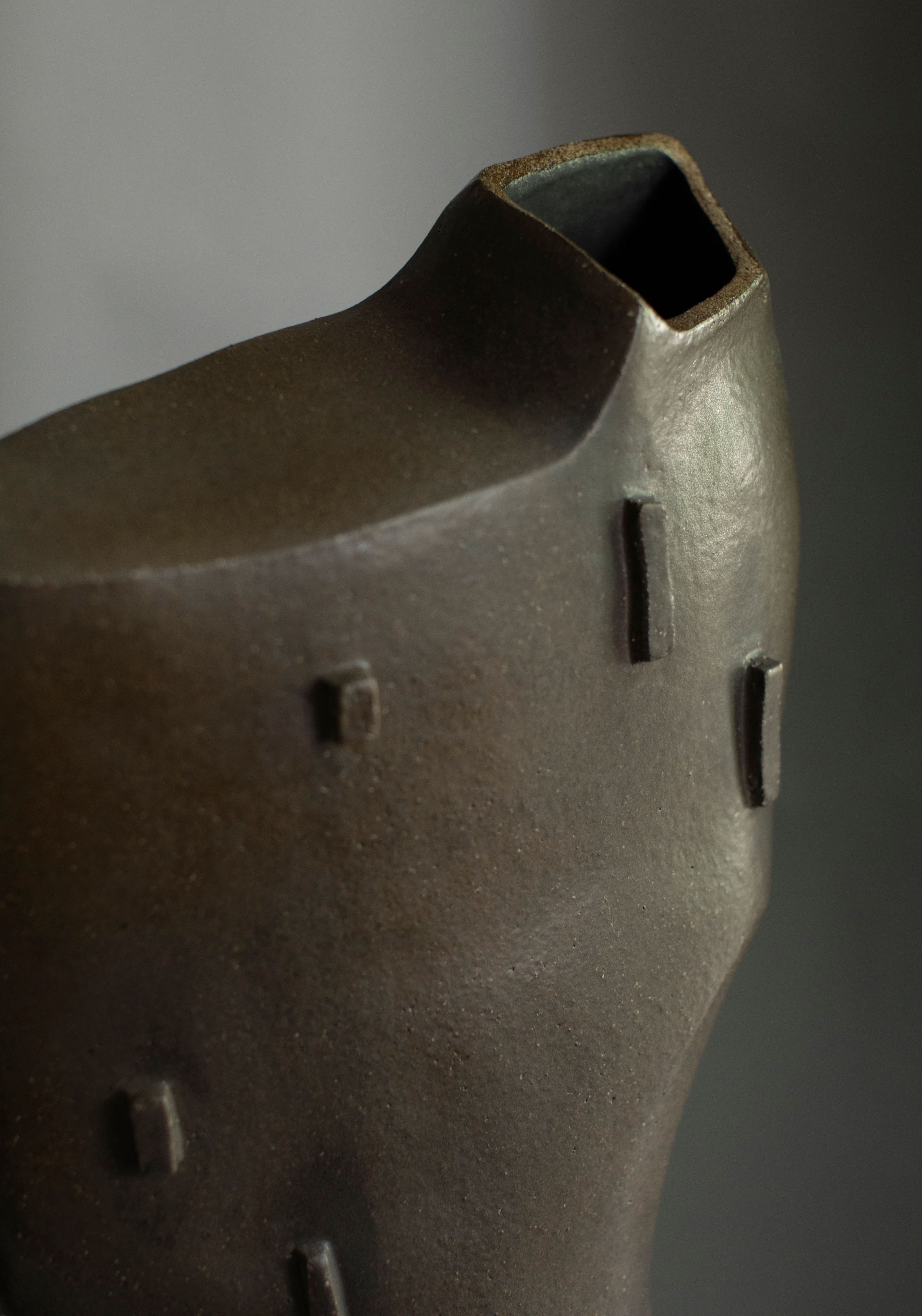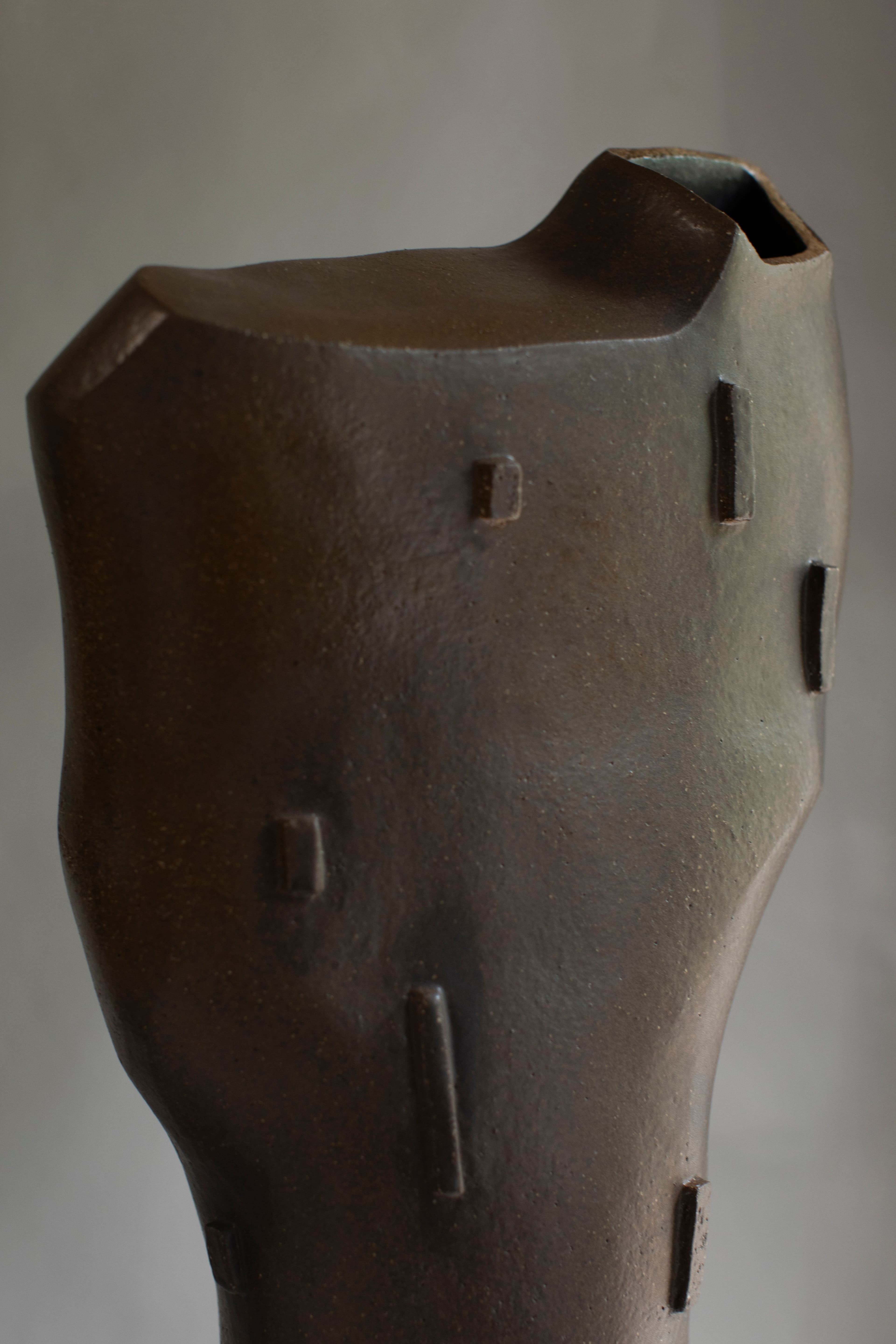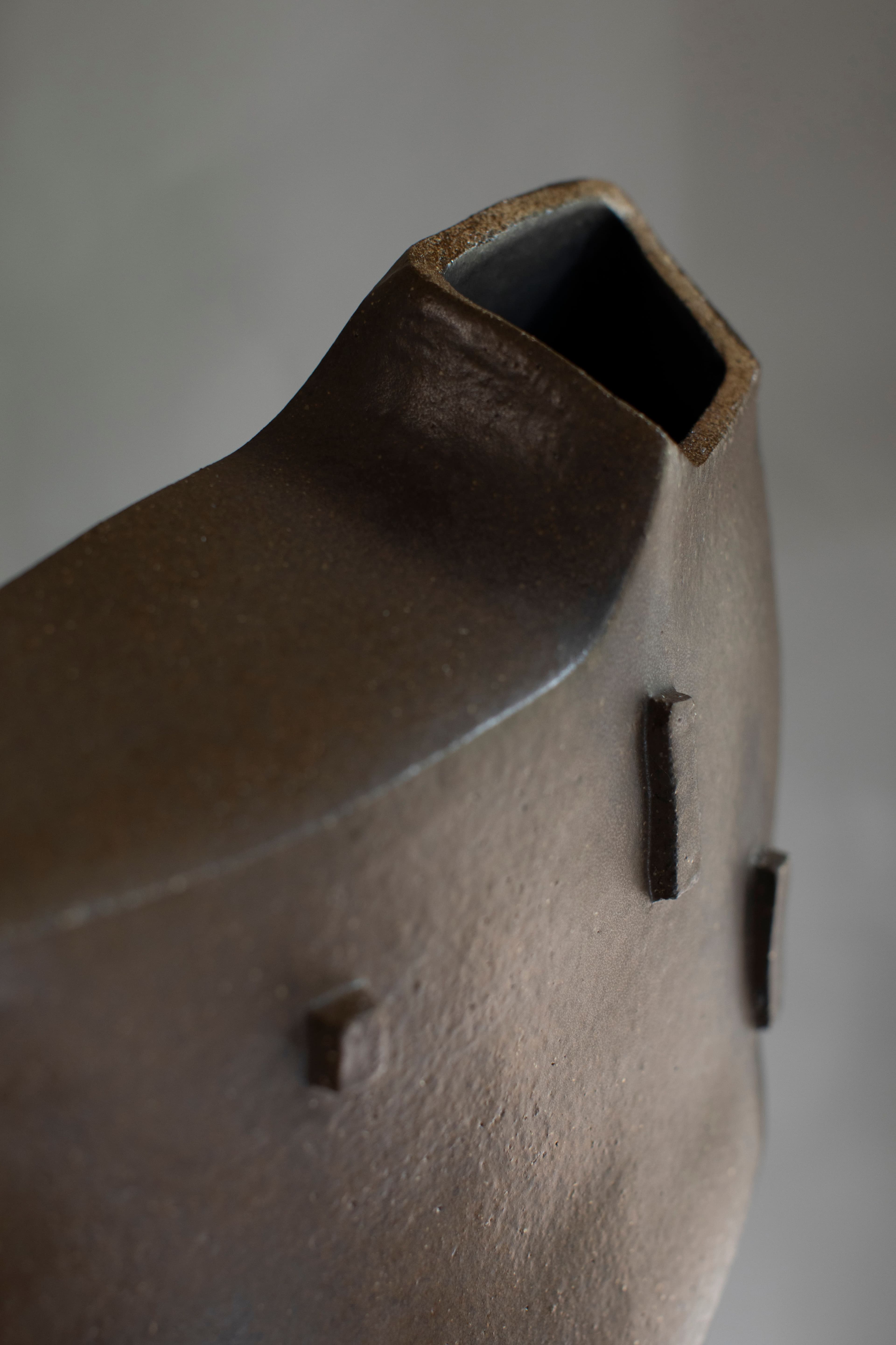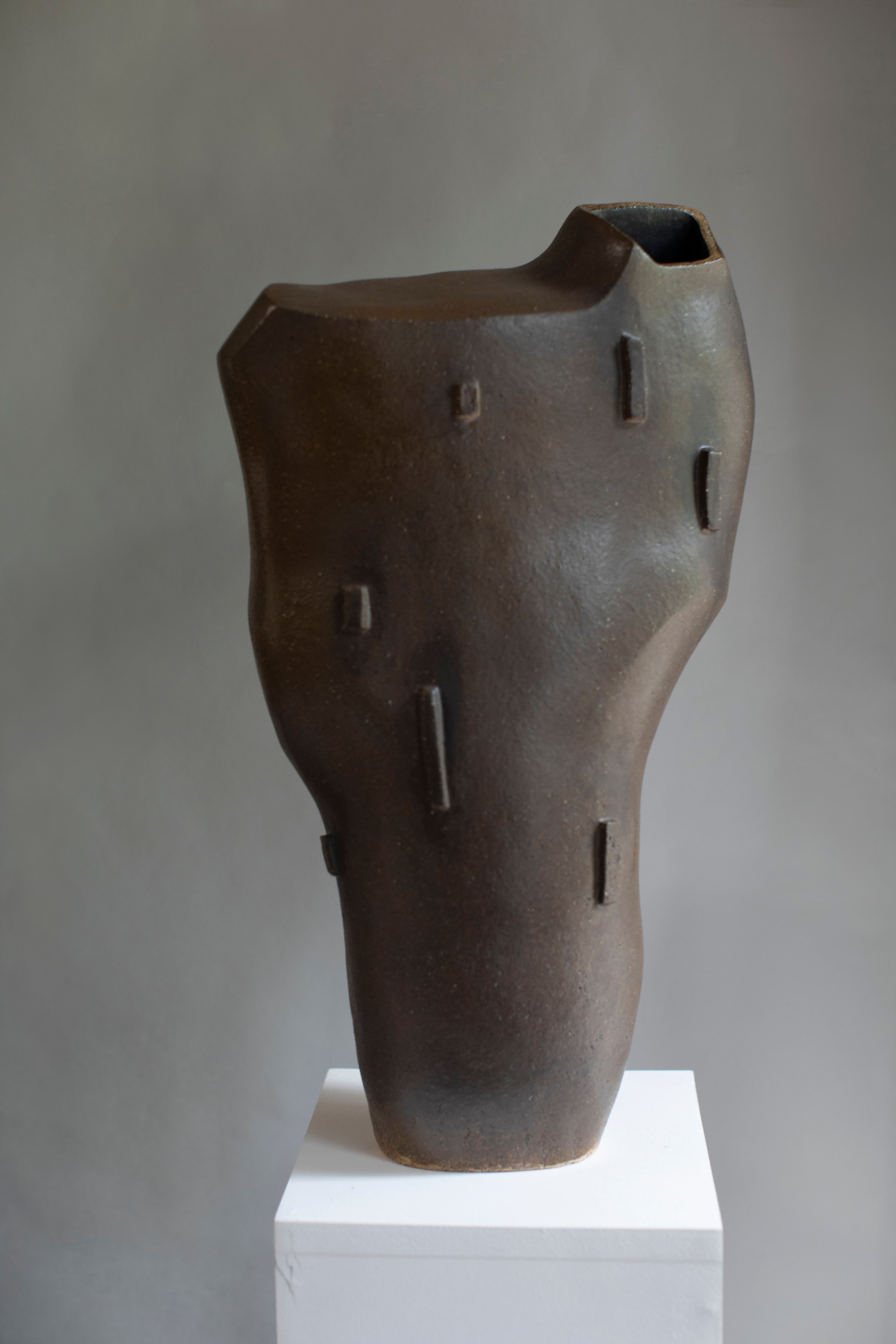 Hand built, high fired stoneware, slip glaze, gas fired